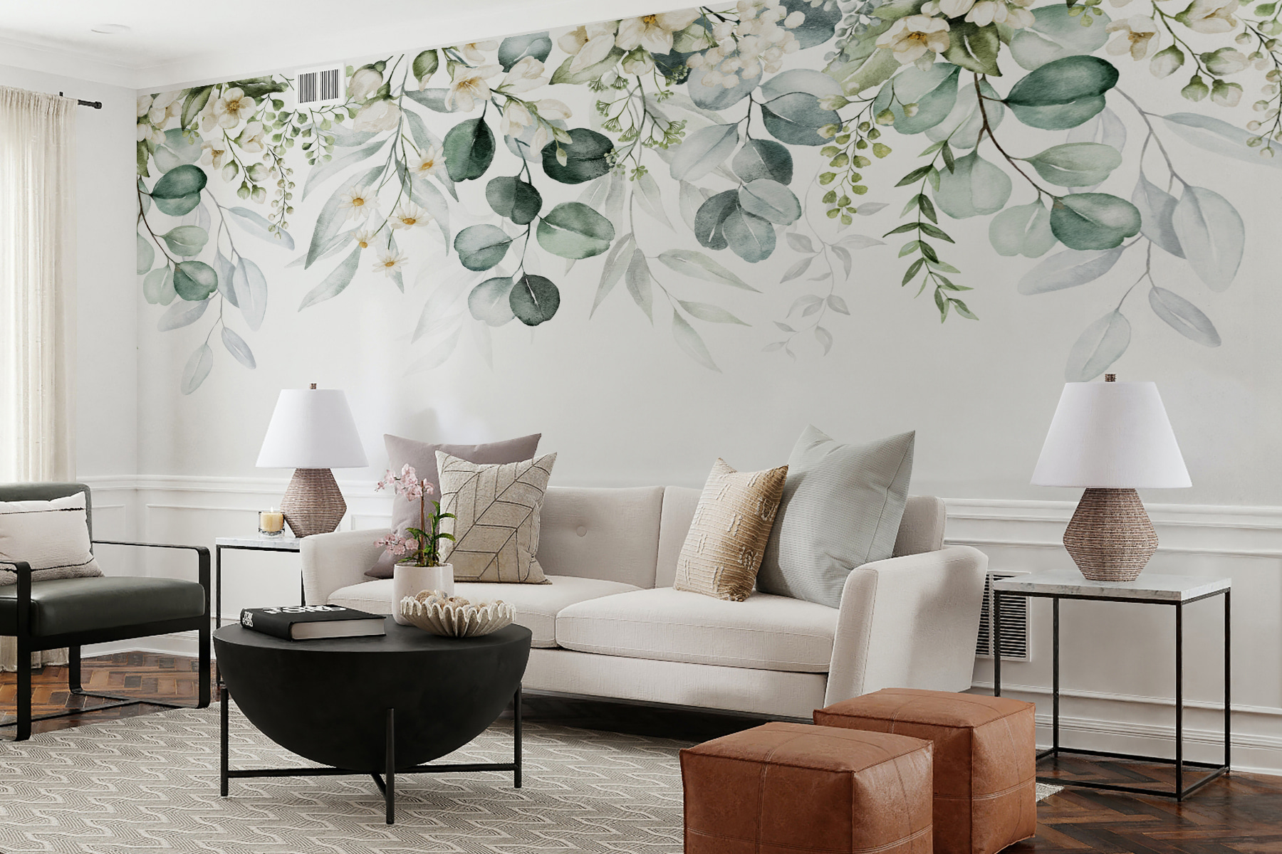 Bring a breath of fresh air into any room with these lovely wall murals featuring delicate florals and soft green leaves. Imagine stepping into a cozy space where the outside beauty meets your walls, creating a serene escape. This mural isn’t just for decoration; it’s like a gentle hug for your senses. Picture afternoon light filtering through, casting soft shadows that dance around the room. It’s perfect for a reading nook or a laid-back living area. Who wouldn’t want a reminder of nature’s grace right at home? This mural may just become your favorite conversation starter!