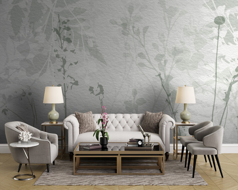 Transform your space with this mural featuring elegant leaves against a soft backdrop. Picture it in your living room, where friends gather and laughter fills the air. The muted greens evoke a sense of calm, almost like taking a stroll through a peaceful forest. Imagine waking up each morning, greeted by this gentle reminder of nature’s beauty. It’s soothing yet stylish—perfect for any wall that needs a touch of charm. Guests might just take a moment to appreciate the serene vibes. Who doesn’t love a little greenery, even indoors?