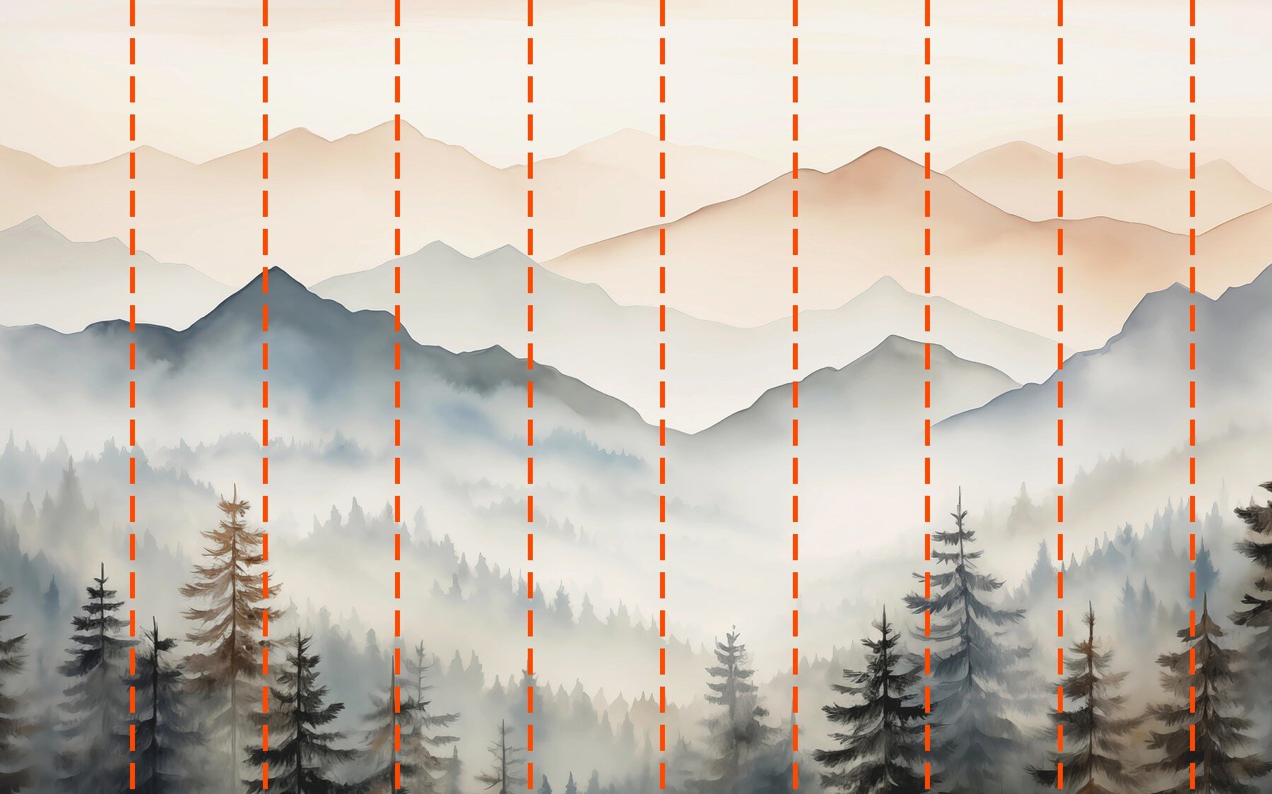 Your wallpaper will be prepared according to the dimensions you provided during the ordering process. The canvas will be divided into convenient sections, each up to 50 cm in width.