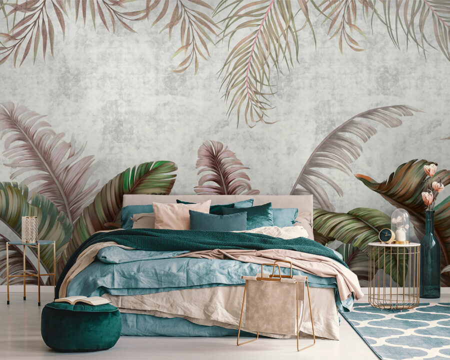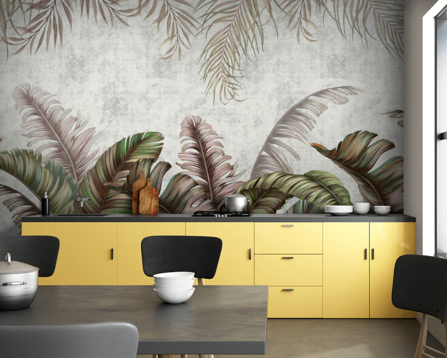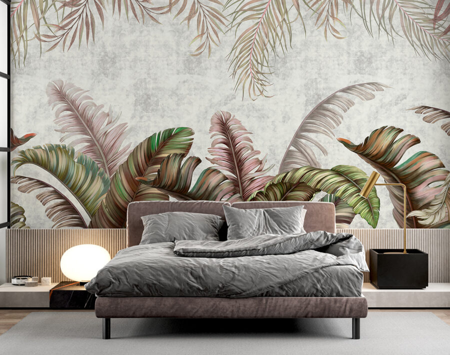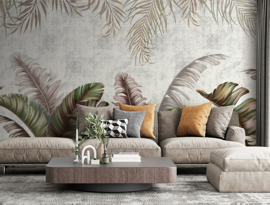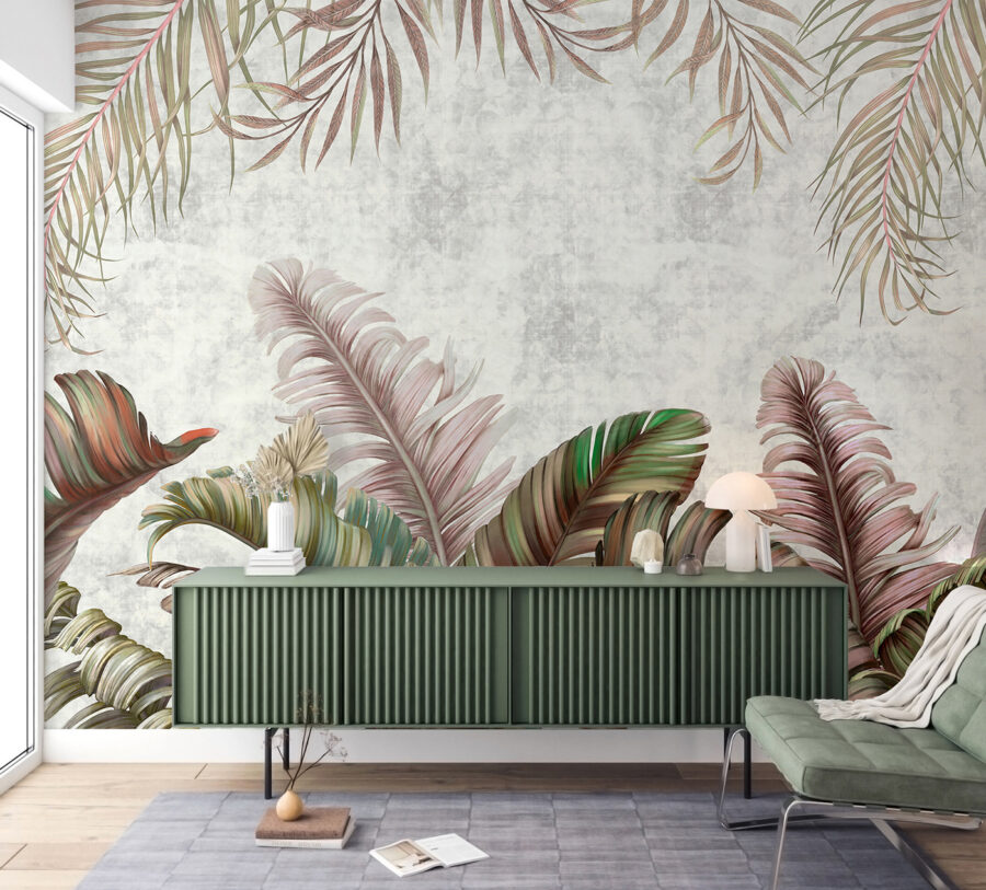 Transform your space with this enchanting wall mural featuring tropical leaves in soothing pastel hues. Imagine strolling through a serene jungle, where every glance reveals the soft beauty of nature. This mural adds just the right touch of calm, making a perfect backdrop for cozy chats or quiet moments with a good book. The subtle colors blend effortlessly into any decor scheme, bringing warmth and a hint of adventure to your room. It’s like taking a mini-vacation right at home, where daily stresses fade away, and all that’s left is tranquility and a splash of fun.