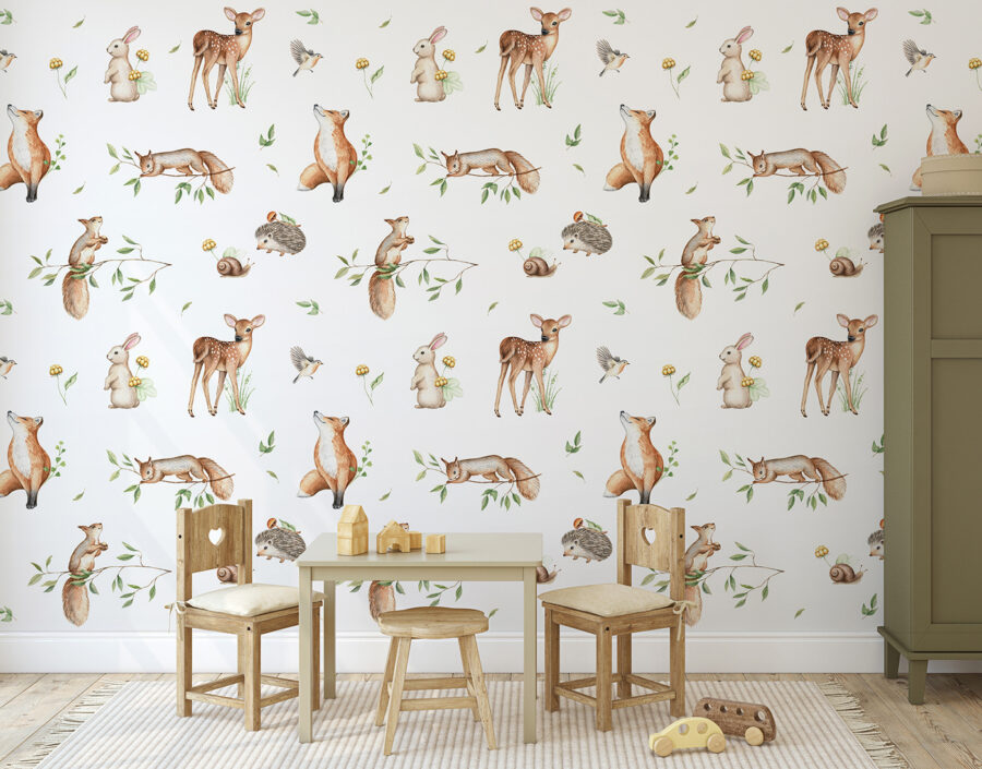 Transform any room into a whimsical woodland getaway with the “Hedgehog with a Mushroom on Its Back” mural! Imagine stepping into a space where adorable creatures like friendly hedgehogs, curious rabbits, and playful foxes frolic against a bright, cheerful backdrop. It’s like inviting a little slice of nature indoors, perfect for sparking joy and conversation.