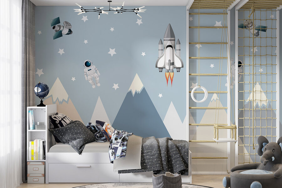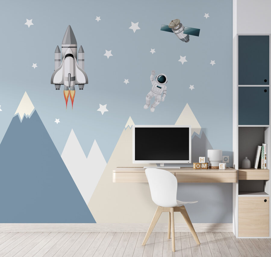 Transforming your space into a cosmic adventure has never been easier! The “Wall Murals Satellite in the Sky” adds a whimsical touch that whisks hearts and imaginations away. Picture this: a cheerful astronaut waving at you while a sleek rocket jets by, all against a backdrop of gentle mountains and twinkling stars. It’s like an invitation to daydream right from your living room.