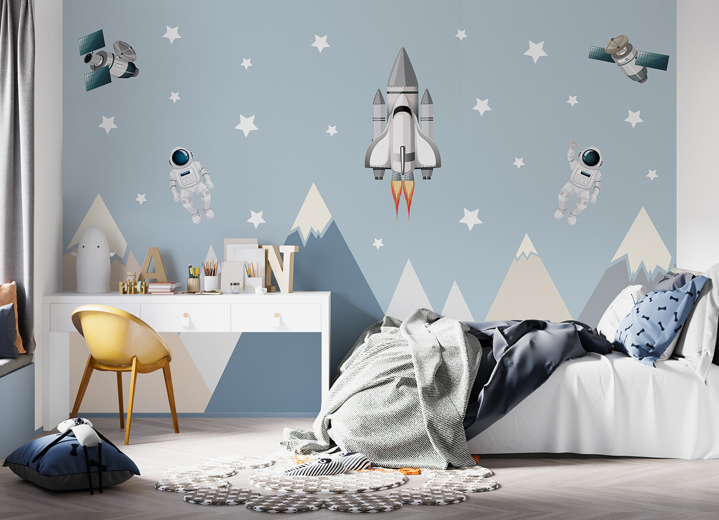 Transforming your space into a cosmic adventure has never been easier! The “Wall Murals Satellite in the Sky” adds a whimsical touch that whisks hearts and imaginations away. Picture this: a cheerful astronaut waving at you while a sleek rocket jets by, all against a backdrop of gentle mountains and twinkling stars. It’s like an invitation to daydream right from your living room.