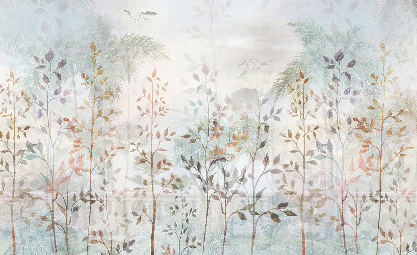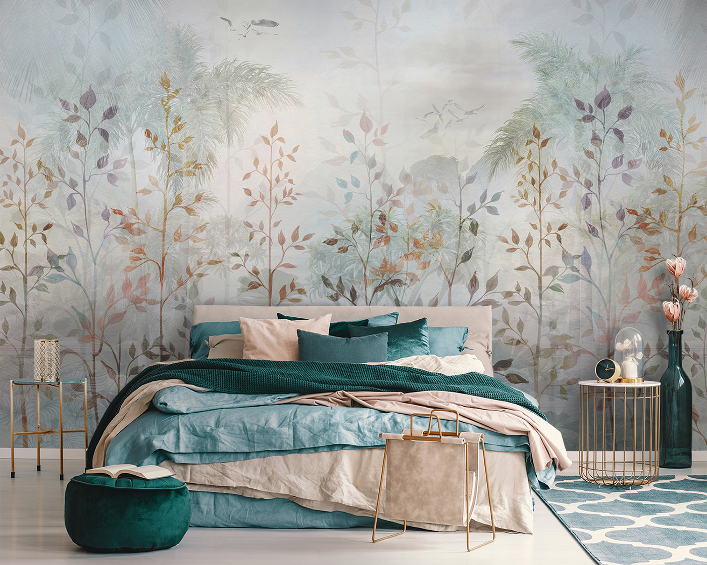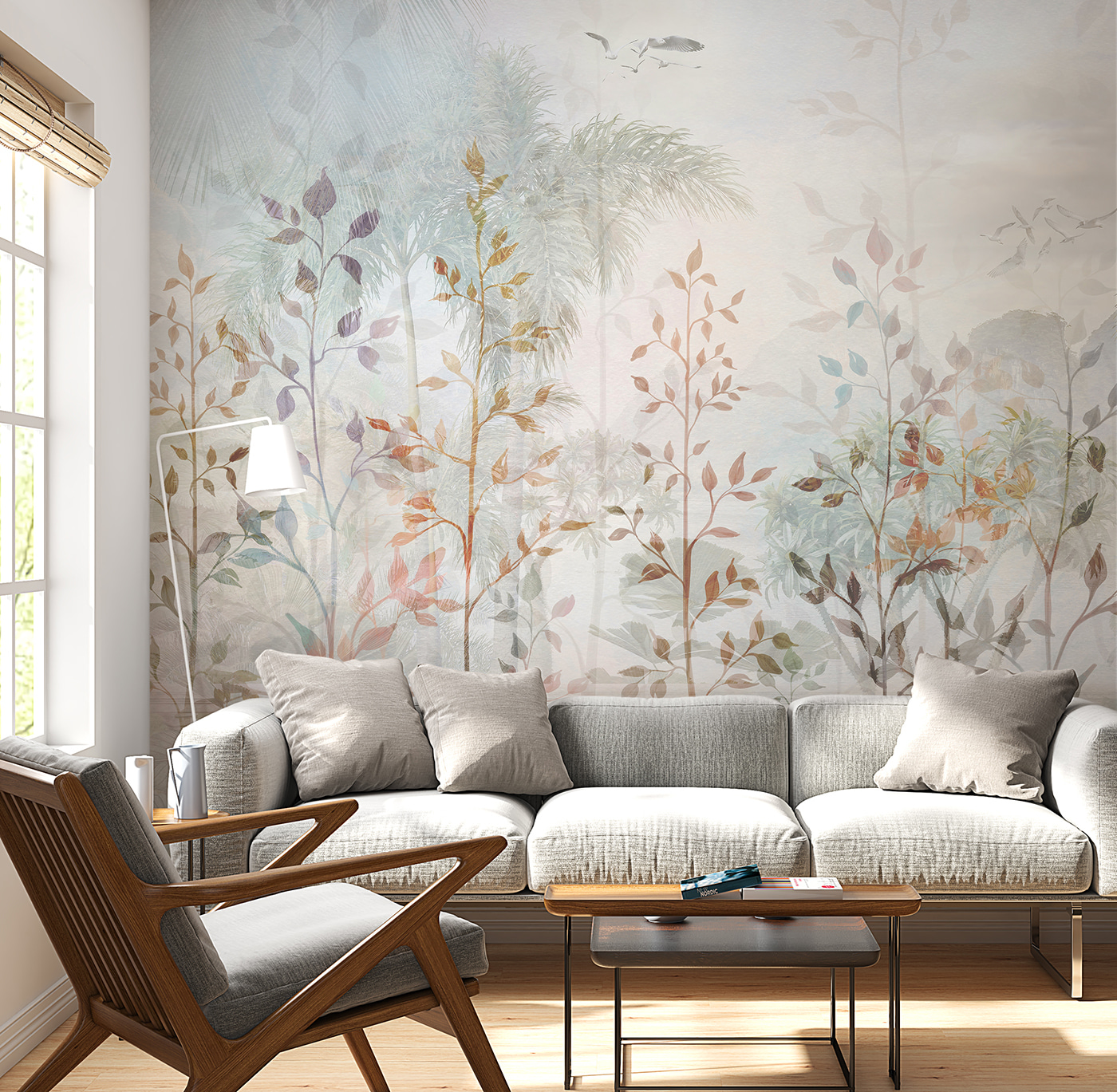 Step into a world where nature dances gently across your walls with this stunning mural, “Nature’s Pastel Dreamscape in Mist.” Picture this: soft, pastel hues blending seamlessly with wispy greens and delicate leaves swaying in an imaginary breeze. It’s like bringing a serene garden inside, without the watering can.