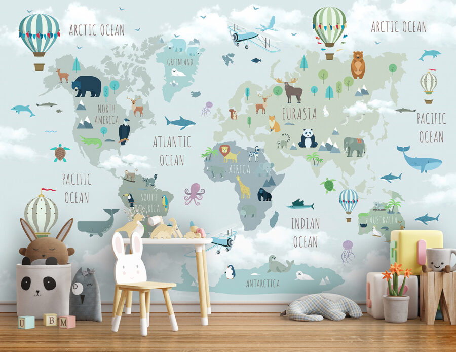 Transform any room into a dreamy escape with the “Hot Air Balloon with Flags” mural. This playful design features whimsical balloons floating across a soft, cloud-filled backdrop, adding not just a splash of color, but also a sense of adventure. Imagine curling up with a cup of cocoa, gazing up at this mural, and letting your mind drift to far-off lands. It’s like having a travel buddy right on your wall! Perfect for a child’s room or a cozy reading nook, this mural brings an inviting warmth that can make any space feel more alive. So, hang it up and let your walls tell stories while you dream big!