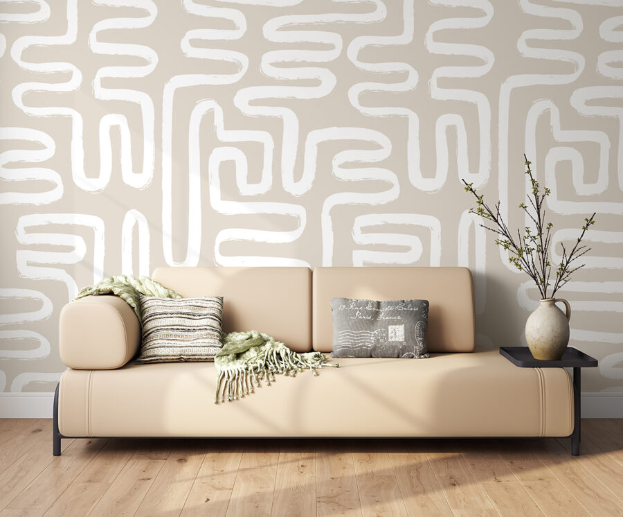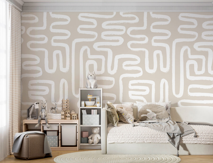 Transform your walls into a canvas of creativity with this abstract mural featuring elegant white lines on a soft beige backdrop. It’s like having a modern art gallery right at home. Imagine sipping coffee while admiring these playful curves—perfect for sparking conversations or just letting your imagination wander. Whether it’s in the living room, office, or even a cozy reading nook, this design adds a refreshing touch without being overly flashy. It’s subtle yet striking, ideal for those who appreciate the beauty in simplicity and want to elevate their space. Ideal for anyone seeking a little inspiration in their everyday surroundings.