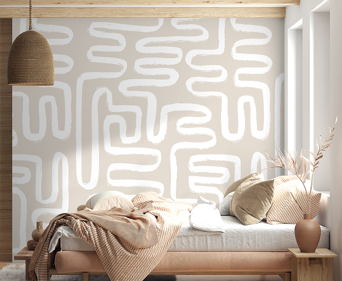 Transform your walls into a canvas of creativity with this abstract mural featuring elegant white lines on a soft beige backdrop. It’s like having a modern art gallery right at home. Imagine sipping coffee while admiring these playful curves—perfect for sparking conversations or just letting your imagination wander. Whether it’s in the living room, office, or even a cozy reading nook, this design adds a refreshing touch without being overly flashy. It’s subtle yet striking, ideal for those who appreciate the beauty in simplicity and want to elevate their space. Ideal for anyone seeking a little inspiration in their everyday surroundings.