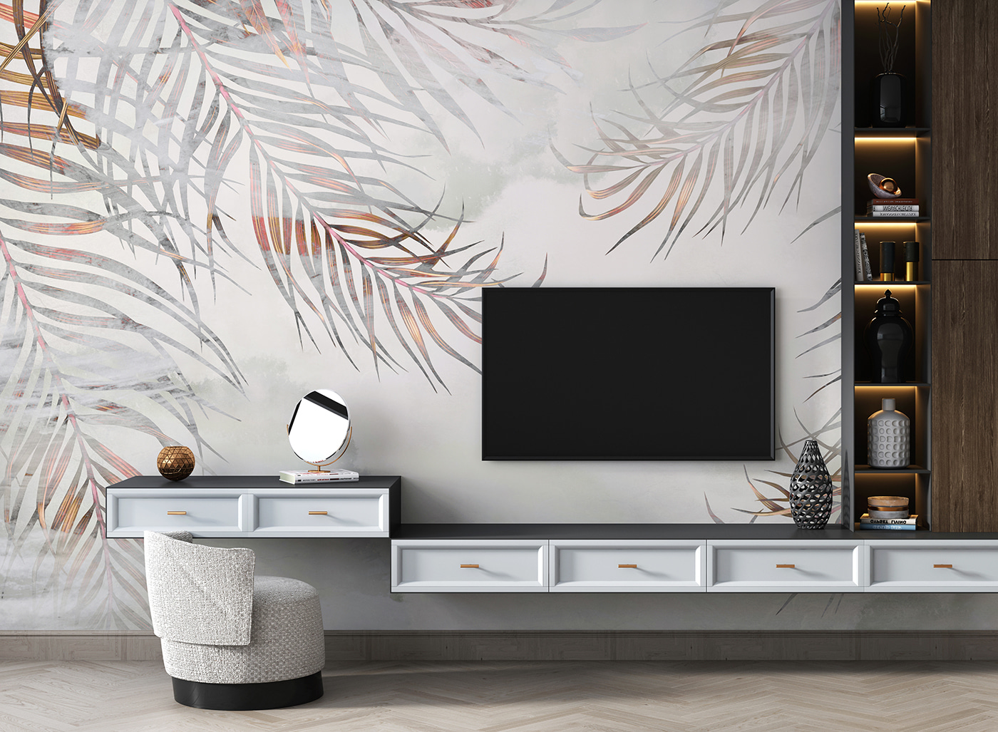 Transforming a space feels like magic, doesn’t it? This mural, showcasing elegant palm leaves in soft hues, brings serenity and style all at once. Picture stepping into a room where the walls breathe tranquility. The muted colors create a dreamy backdrop, making any area feel more inviting—ideal for those cozy nights or lively gatherings. Friends might comment on the tropical vibes, wishing they could just hop into the scene! It’s like bringing a touch of paradise indoors, and who wouldn’t want that? Perfect for kitchens, living rooms, or even a serene workspace. Imagine sipping tea or coffee, feeling a little escape every day with this lovely addition.