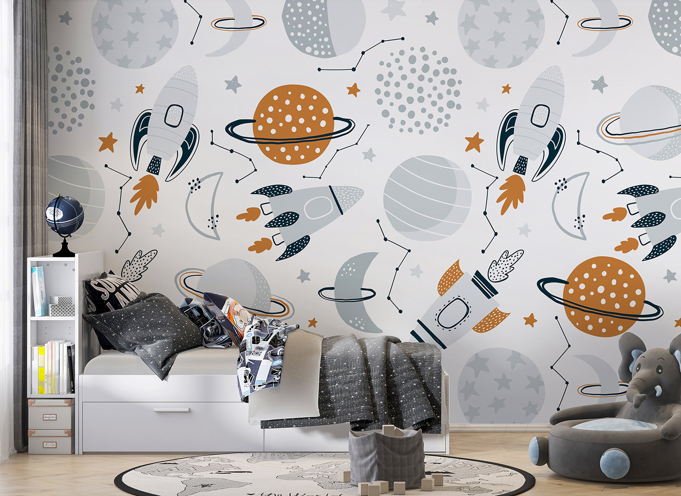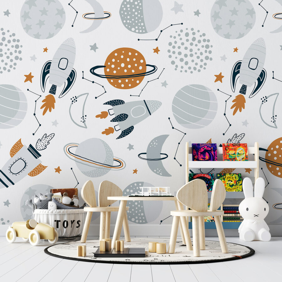 Transform your space into a cosmic wonderland with the “Wall Murals White Circle with Stars.” Imagine stepping into a room where rockets zoom past playful planets and twinkling stars, making every day feel like an adventure. This mural isn’t just a decoration; it’s like having your own slice of the universe right at home. Picture a cozy reading corner or a child’s playroom, where giggles mix with dreams of space exploration. It adds a warmth that invites creativity and curiosity. Don’t be surprised if guests find themselves staring up, lost in its charm. So why wait? Bring the stars indoors and let your walls tell their own stories!