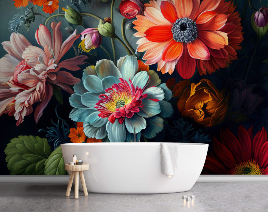 Transform any room into a lush garden with this vibrant wall mural featuring a stunning array of blooms. Imagine walking into a space where these colorful flowers seem to sway gently in the breeze, creating a cheerful atmosphere. It’s like having a mini botanical wonderland right on your wall. The rich hues and playful arrangement invite a sense of joy and relaxation, perfect for a cozy nook or a lively living area.