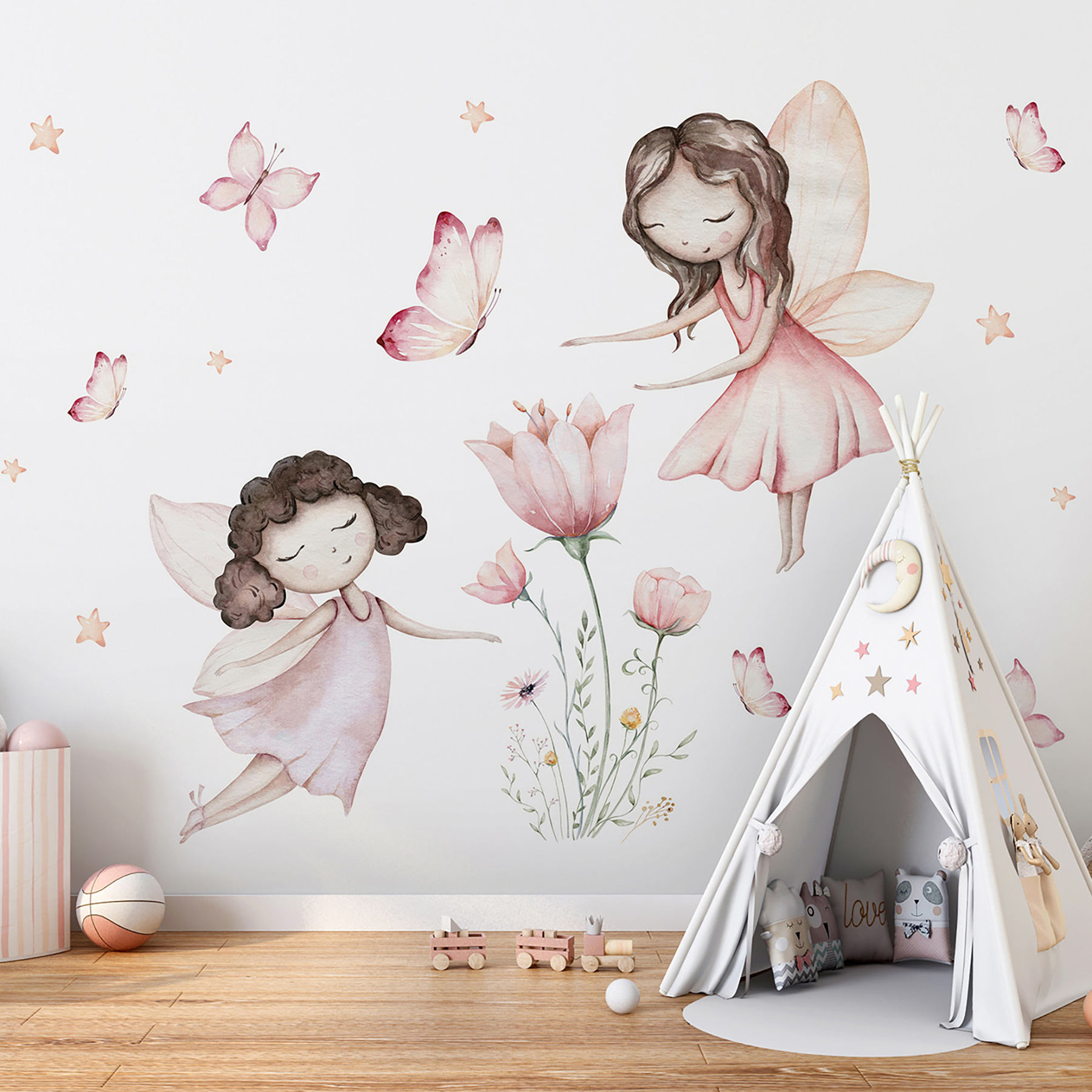 Transform your space into a whimsical escape with “Fairies Dance Among the Blossoms.” This mural brings a sprinkle of magic right to your walls—two charming fairies float gracefully amongst delicate flowers and fluttering butterflies. Imagine kicking back with a cup of tea while these enchanting figures invite a sense of serenity and wonder into your day. Ideal for a cozy reading nook or a playful nursery, this mural doesn’t just brighten a room; it tells a story. Who wouldn’t want their very own fairy garden? It’s like having a tiny enchanted world right at home. Perfect for those moments when reality feels a bit too, well, reality.