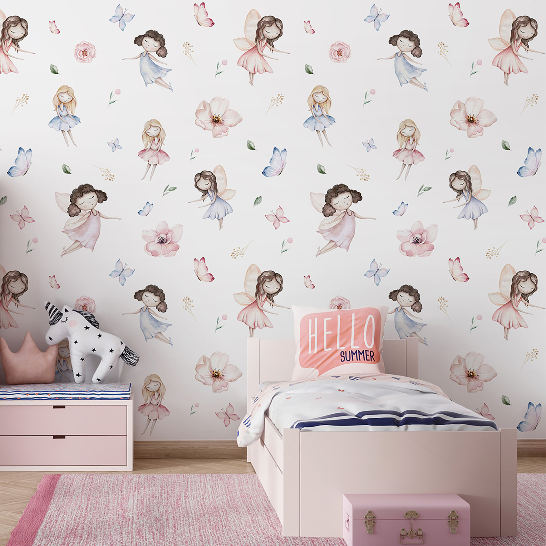 Transform your space into a whimsical escape with this enchanting wall mural featuring delightful girls in flowing dresses, surrounded by delicate butterflies and blooming flowers. It’s like stepping into a storybook—imagine curling up with a cup of tea, letting the gentle colors soothe your soul. Perfect for a child’s room or a cozy reading nook, this mural creates a sense of wonder and magic. Each glance brings a little joy, reminding one to embrace the lighter side of life. Who wouldn’t want a daily dose of fairy charm?