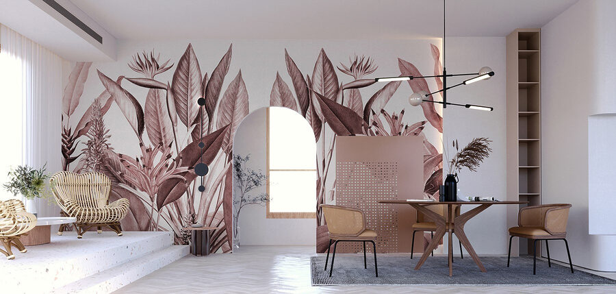 Transform your space into a tropical paradise with this stunning “Wall Murals Tropical Leaves in Elegant Illustration.” Imagine stepping into a lush jungle every time you walk into the room. The intricate details of the leaves create a soothing vibe, making it perfect for a living room, bedroom, or even that cozy nook you’ve been meaning to spruce up. It’s like inviting nature inside, without the bugs—bonus! Friends might just feel compelled to frolic in front of it. With its elegant design, this mural whispers relaxation and speaks volumes about your unique taste. Give your walls some personality and watch your space come alive!