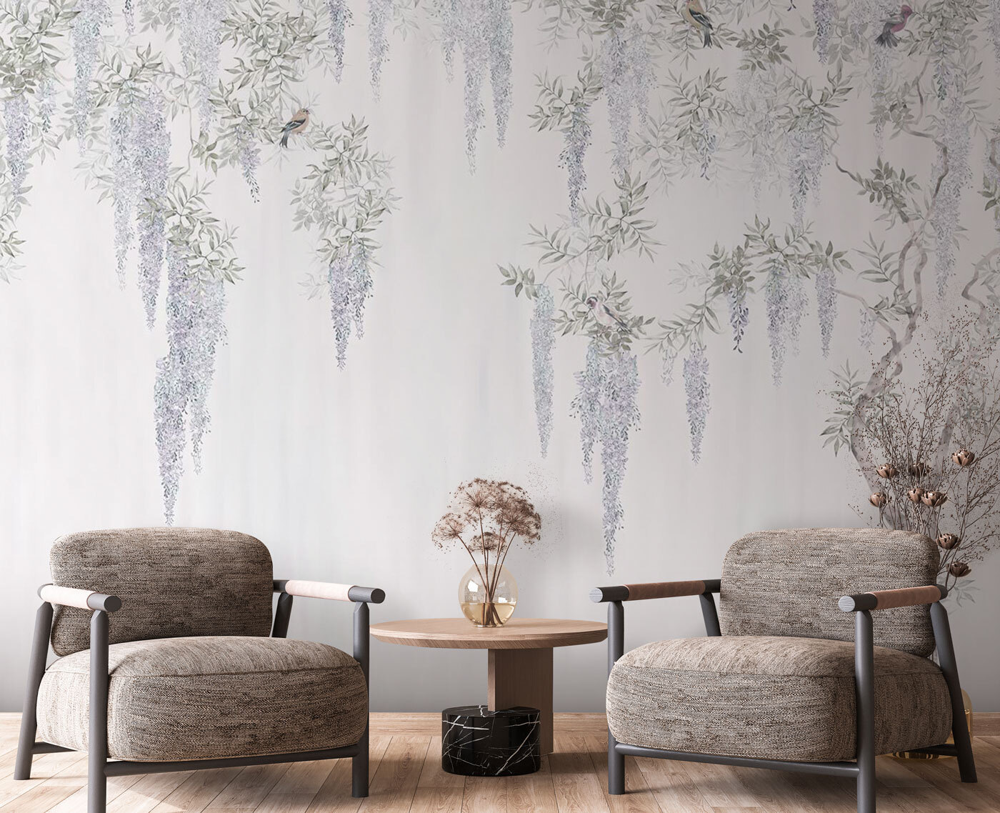 Transform your walls with this stunning mural featuring delicate birds perched among cascading vines. It’s like bringing a serene garden into your home—minus the pesky insects! The soft colors and whimsical design invite calmness and a sense of wonder. Imagine sipping your morning coffee, the sunlight streaming in, and those little birds whispering sweet nothings with their charm. Perfect for creating a cozy nook, or even a mini oasis in a busy space. Friends will marvel at your unique taste, and you might just find yourself daydreaming about sunny afternoons in nature.
