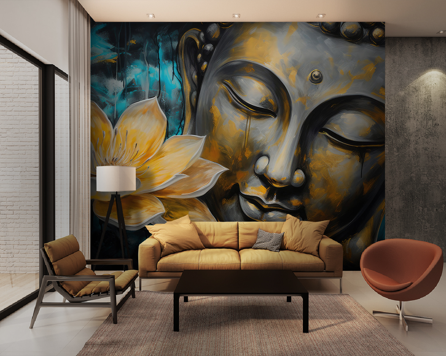 Transform any space with this stunning mural featuring a vibrant yellow flower that’s ready to brighten up your day. Imagine walking into a room and feeling like you’ve stepped into a serene garden. The flower, almost alive, pops against the rich backdrop, inviting daydreams and cozy conversations. It’s perfect for adding a touch of nature’s charm, whether it’s in a living room, a cozy reading nook, or even a peaceful yoga studio. Friends might just find themselves lingering a little longer, talking about life while soaking in the beauty. Plus, it might just inspire a spontaneous plant parent moment. Talk about a conversation starter!