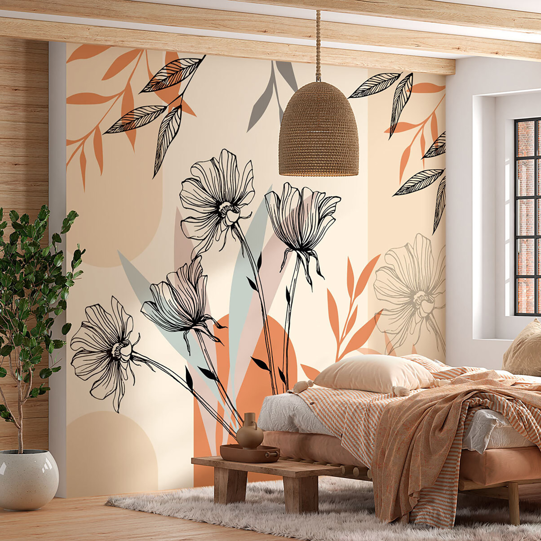 Transform any room into a botanical wonderland with this stunning black and white flower mural. It’s like having a blooming garden right on your wall, minus the pesky pollen! The delicate lines and gentle curves give off an elegant vibe, while the soft background colors provide the perfect contrast. Imagine sipping your morning coffee, soaking in the beauty—it’s a little slice of tranquility. Perfect for nature lovers or anyone wanting to add a unique twist to their space. Don’t be surprised if guests start asking where you got such a masterpiece!