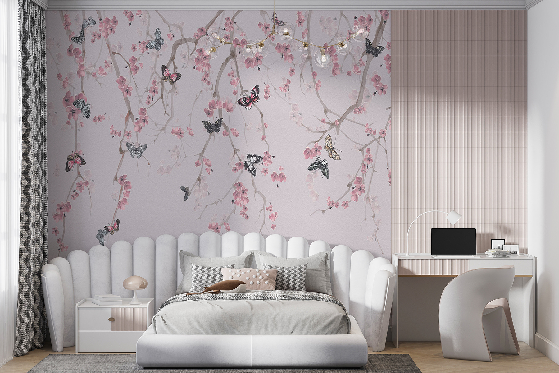 Transform your space with the dreamy “Butterfly on a White Surface” mural, where nature flutters right onto your walls. Imagine sipping coffee in a room adorned with delicate pink blossoms and whimsical butterflies dancing overhead—it’s like being in a garden without the pollen, perfect for those with allergies! This mural isn’t just decoration; it brings a sense of tranquility, turning any area into a peaceful retreat. It’s great for a cozy reading nook or a calming accent in a child’s room. Just picture those enchanting vibes—serenity wrapped in charm.