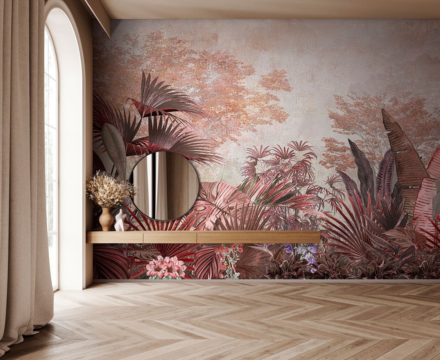 Transform any space into a serene oasis with this “Tropical Foliage” wall mural. Its muted colors evoke a sense of calm, making it perfect for a reading nook or a cozy living room. Imagine sipping a cup of tea, surrounded by lush leaves that whisper stories of far-off jungles. It’s like bringing a piece of nature indoors—without the humidity! The gentle hues allow it to blend beautifully with different decor styles. Whether you’re throwing a laid-back brunch or just enjoying a quiet night in, this mural adds a dash of vibrant flair that keeps the vibes relaxed.