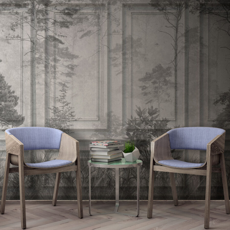 Imagine stepping into a dreamy world where nature waltzes with classic architecture. This wall mural, aptly named “Nature Blends with Classic Architecture,” transforms any space into an elegant escape. With its gentle gray tones and striking silhouettes of trees and plants, it offers an inviting atmosphere that feels both serene and sophisticated. Perfect for a cozy reading nook or an upscale dining area, it whispers elegance without shouting. Picture a cup of tea in hand as you relax, with the calming beauty of nature right at your fingertips. Definitely a conversation starter!