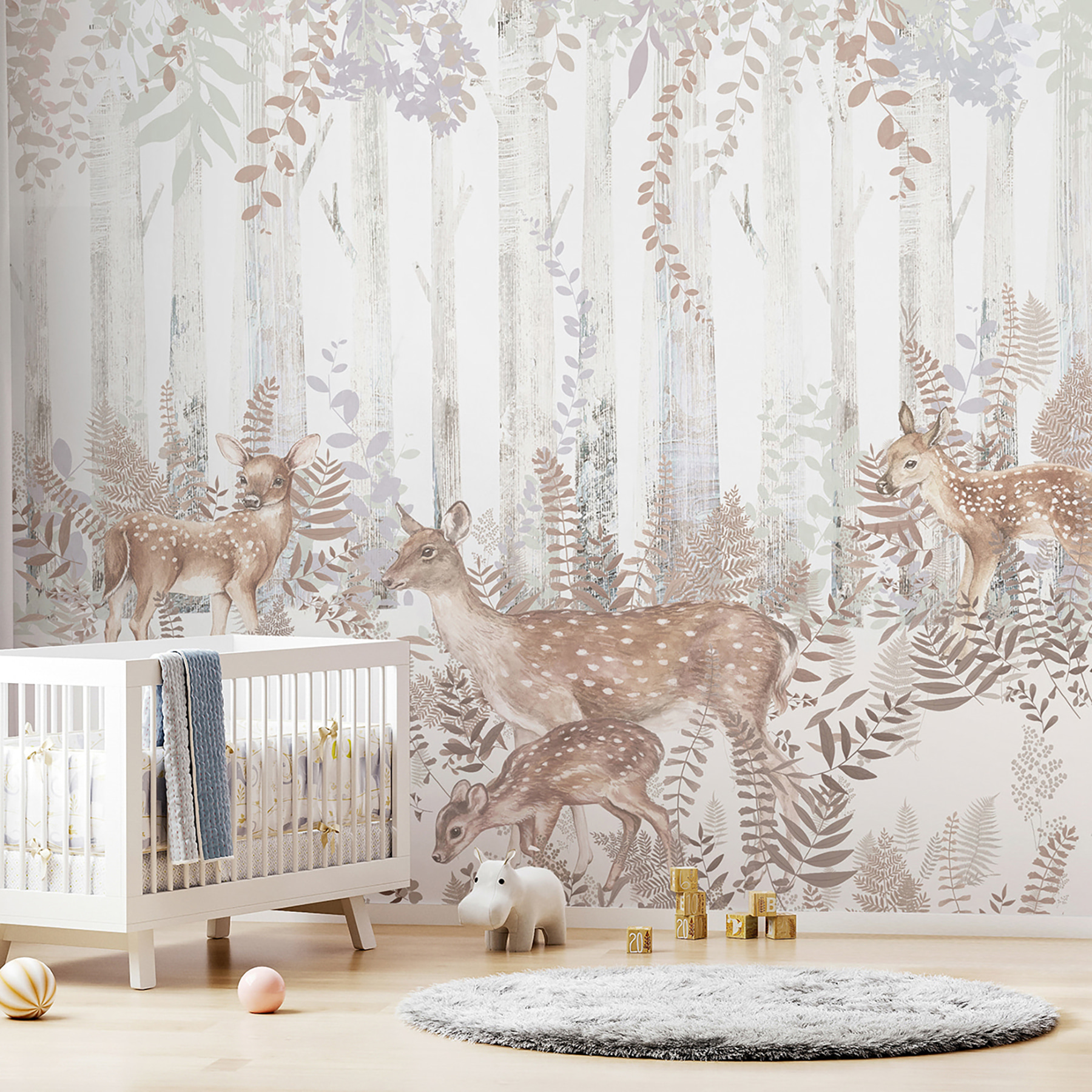 Transform your space into a serene woodland retreat with this stunning mural of deer in a forest! Imagine the gentle rustle of leaves and the soft glow of natural light filtering through trees, all from the comfort of your living room. These graceful creatures peeking through lush ferns instantly bring a bit of nature indoors, perfect for those cozy nights or peaceful mornings with coffee in hand. It’s like having a window to a tranquil world—no bugs, no weather drama, just peace. Friends will ask if you’ve moved to a cabin in the woods! A unique touch for any wall, and honestly, who wouldn’t want to be surrounded by such beauty? It’s a little slice of nature that’ll make any space feel special.