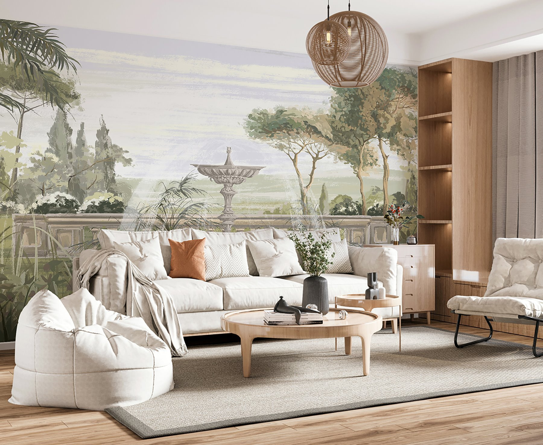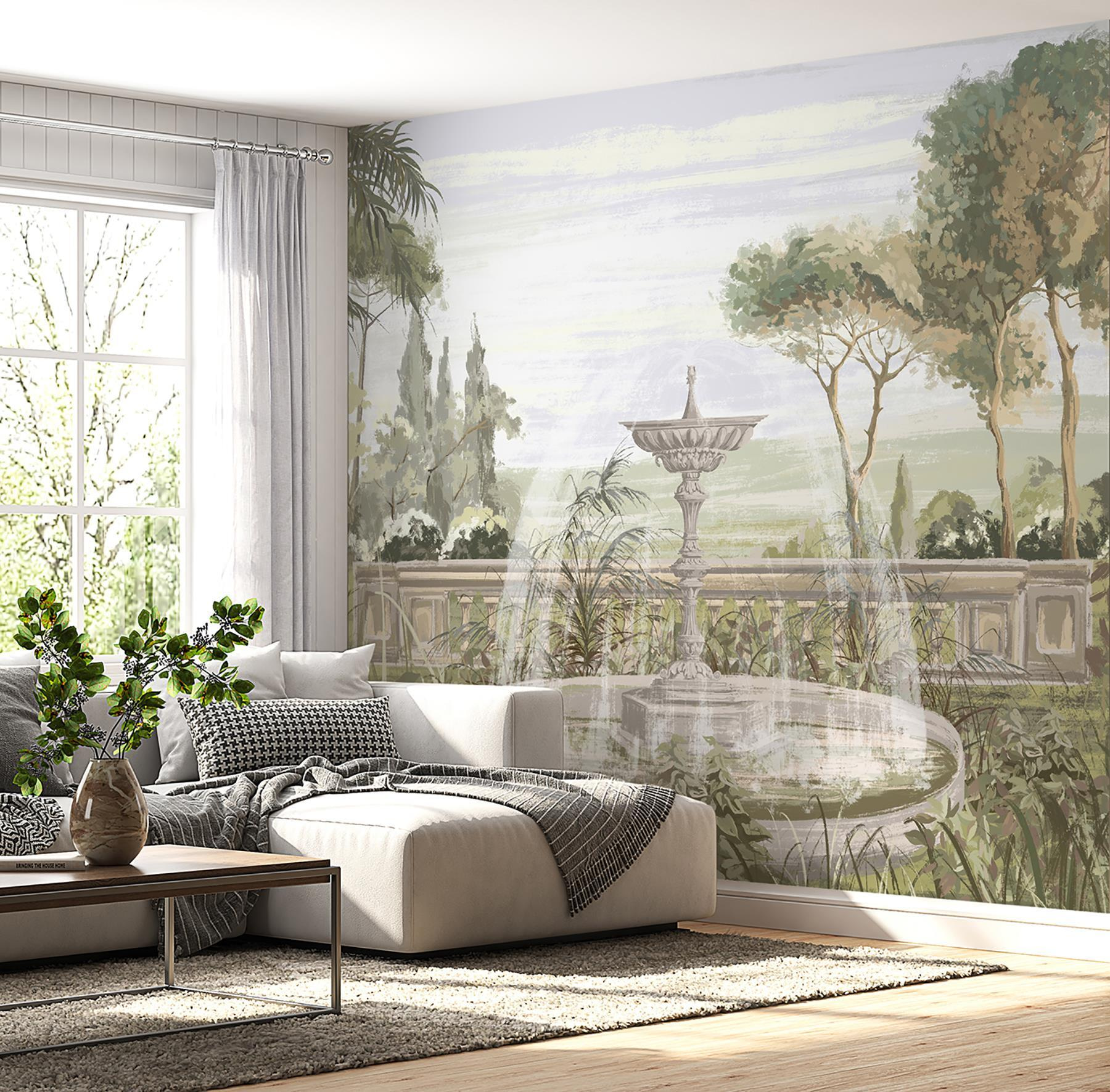 Transform any room into a serene escape with this wall mural featuring a lovely garden fountain. Picture this: you’re sipping a cup of coffee on a lazy Sunday, glancing at the gentle cascade of water, surrounded by lush greenery. The soft colors create a calming vibe, perfect for a reading nook or a cozy living area. It’s like bringing the outdoors in—minus the bugs and weather worries! Imagine the compliments from friends who step in, thinking you’ve turned your space into a secret garden. A beautiful backdrop that’s sure to spark conversations and maybe even daydreams of quiet afternoons spent among flowering plants and trickling water. Perfect for those who love a touch of nature without stepping outside!