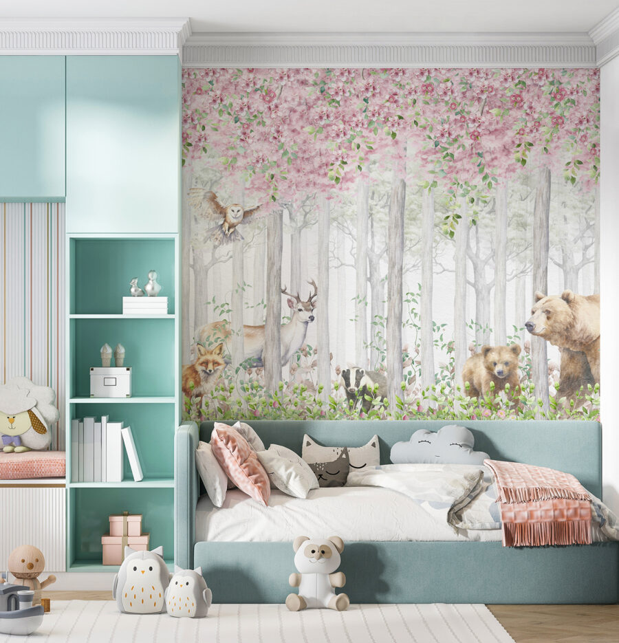 Transform any room into a serene woodland escape with the “Watercolor of a Bear” mural. Picture this: vibrant pink blossoms swaying gently, giving a warm hug to curious critters like a cuddly bear and a sly fox. It’s like Mother Nature threw a party and forgot to send out invites! This mural adds an enchanting touch, perfect for a cozy nook or a playful kid’s room. Imagine sipping coffee while basking in nature’s charm—it’s a soft reminder of summer days spent exploring. Let the outdoors in, and watch as every glance brings a smile!