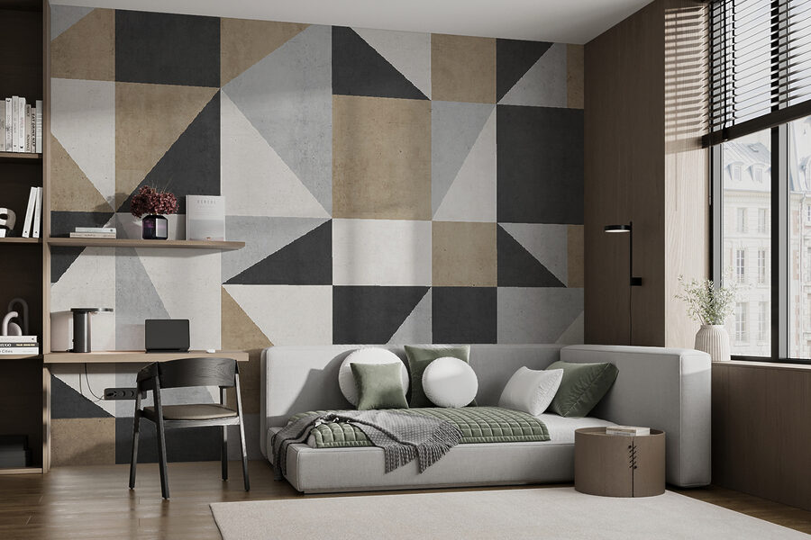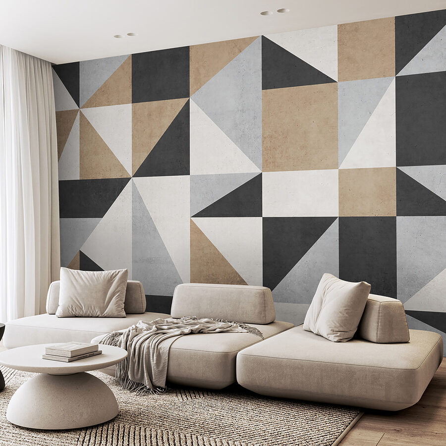 Transform your space with this stunning wall mural featuring a geometric pattern in neutral tones. It’s like inviting a piece of modern art into your home—minus the hefty price tag. Picture this: a cozy afternoon, friends lounging around, and everyone’s eyes drifting to those bold shapes and soft colors. It sparks conversation, doesn’t it?