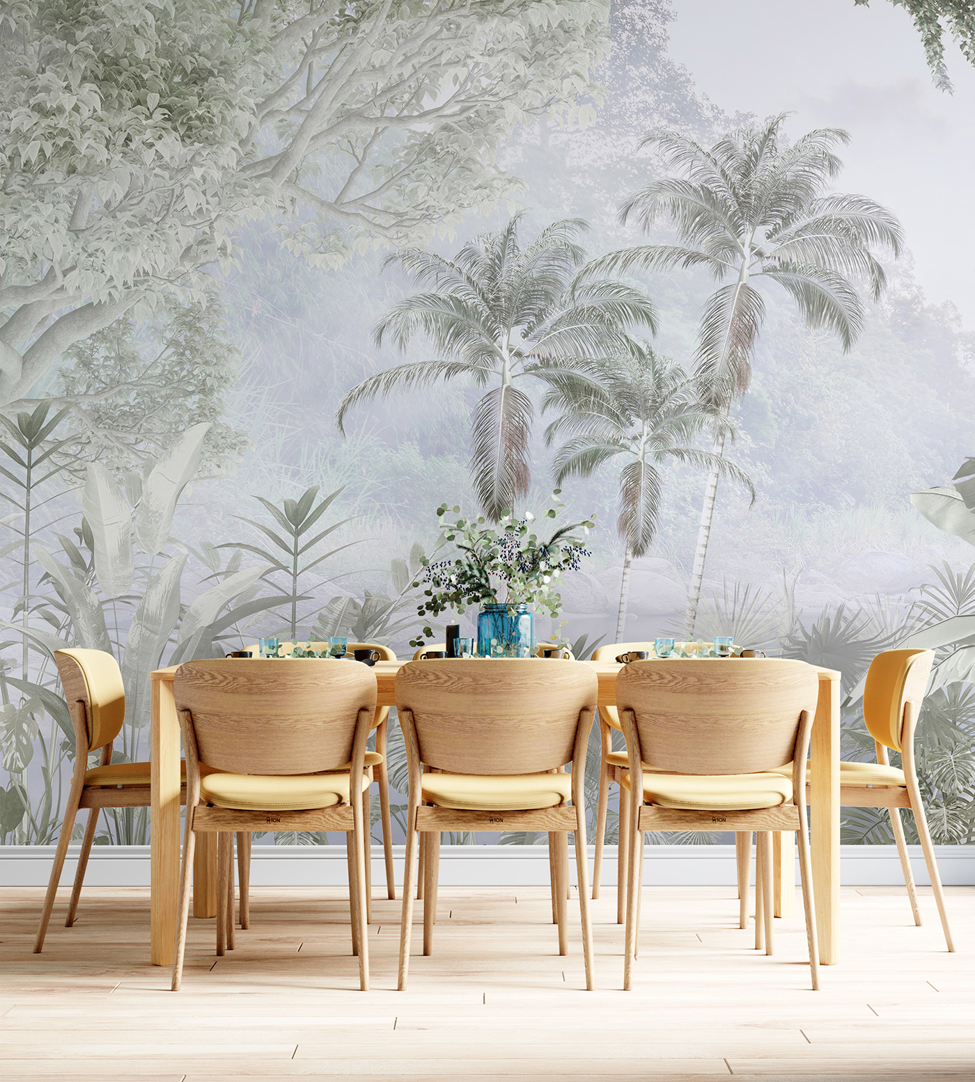 Transform any space into a dreamy tropical getaway with this stunning mural featuring a group of palm trees. Imagine walking into a room and instantly feeling the warmth of a sun-soaked beach—without leaving home. The soft, serene colors create a calming vibe, perfect for unwinding after a long day. Picture sipping your morning coffee while gazing at these lush silhouettes that seem to whisper secrets of distant shores. It’s like bringing a slice of paradise right into your living room, making every day feel like a mini vacation. Talk about décor that really gets you in the mood!