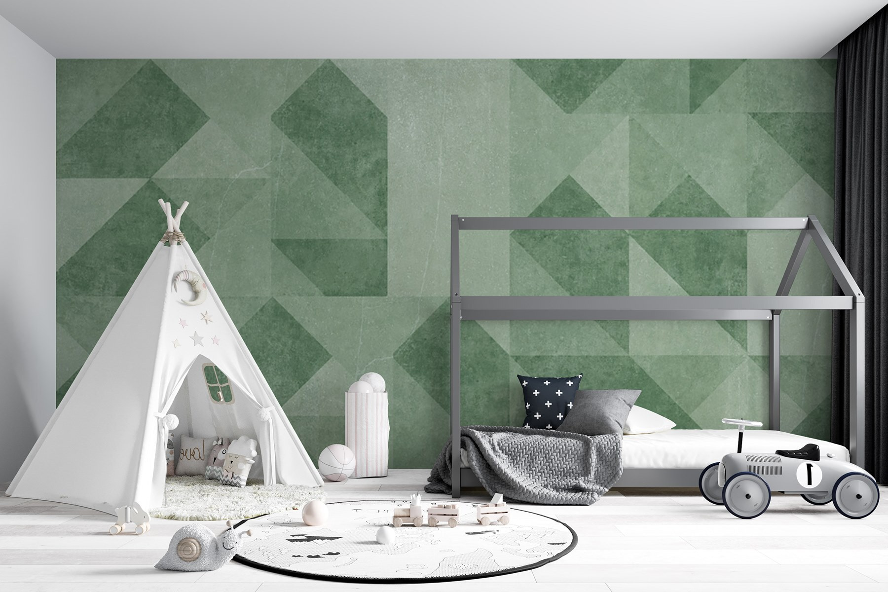 Transform your space with this eye-catching mural that boasts a delightful blend of green and white. Picture it now—waking up each morning to refreshing hues that bring a touch of nature indoors. The geometric patterns invite a sense of movement, making walls feel alive and dynamic. Imagine sipping coffee while admiring this artwork, feeling inspired and uplifted. It’s not just decoration; it’s like having a piece of the great outdoors right in your living room. Perfect for any spot needing a splash of creativity, this mural could turn even the dullest space into a cozy sanctuary.