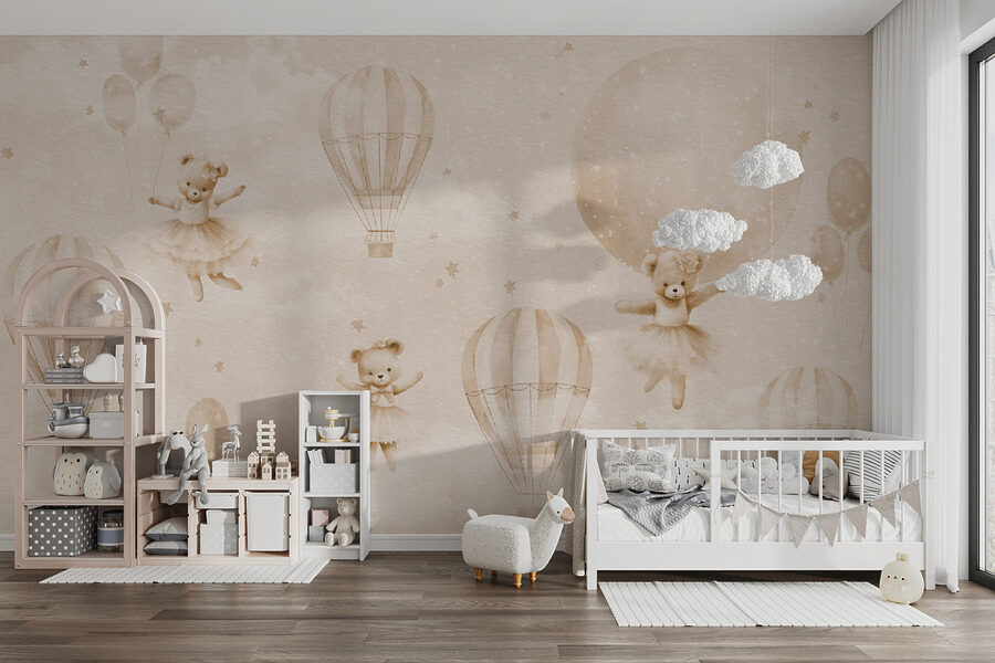 Transform any child’s room into a whimsical wonderland with this delightful “Teddy Bear in a Tutu” mural. Imagine a playful scene where cuddly bears dance among soft clouds and hot air balloons, creating a dreamy escape that’s perfect for sparking imagination. It’s the kind of mural that makes bedtime stories a breeze and inspires little adventurers to dream big. Parents will love how effortlessly it brightens the space, while kids will giggle at the adorable teddy’s twirls. It’s more than decor; it’s a hug for the walls. Such charm can make one stop and smile, letting young hearts float away on clouds of joy!