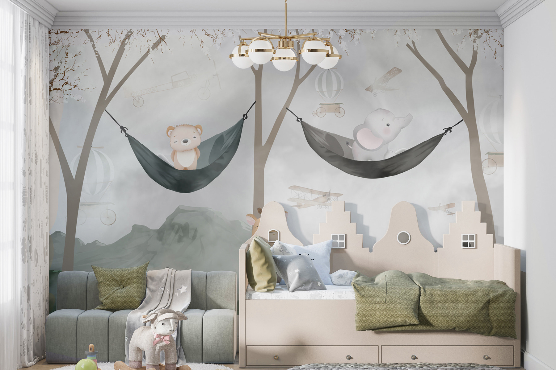 Transform your space with this delightful “Wall Murals Cartoon of a Panda”! It’s like a cozy woodland escape right on your wall. Picture this: a serene background with friendly animals—cute pandas, playful elephants, and adventurous giraffes, all lounging in hammocks. It’s a whimsical scene that invites smiles, sparking joy and imagination in any room. Ideal for nurseries, playrooms, or even a quirky corner of your living space. Just imagine a little one pointing at the mural, giggling at the panda as if it’s about to tell a story. It adds warmth and playful charm, making any wall feel like an adventure waiting to unfold. Perfect for those who adore unique decor!