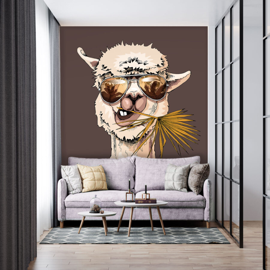 Brighten up your space with this adorable wall mural of a cool llama saying “Hola!” in stylish shades. It’s like having a funky friend who brings a little sass and a lot of smiles into your home. Imagine stepping into a room where this chic llama keeps watch, casually munching on a palm leaf while making sure the vibe is always laid-back and cheerful. Perfect for a kid’s room or a quirky living space, this mural’s warm colors and fun design add personality without overpowering. It’s not just decor; it’s a conversation starter—a gentle reminder to embrace life with a sense of humor and style. Who wouldn’t feel happier with a llama greeting them every day?