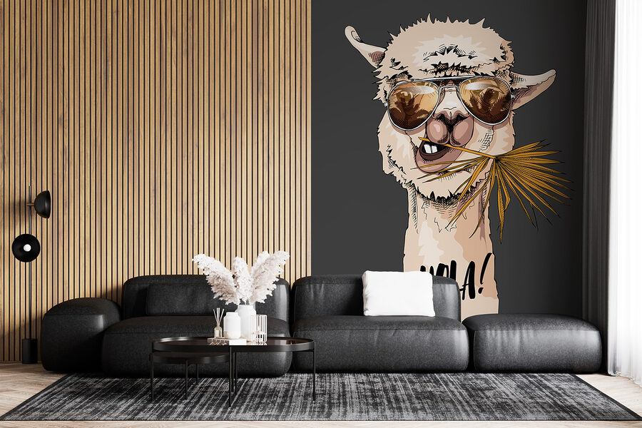 Meet the “Llama Chillin’ with Cool Shades” mural, your new favorite conversation starter! This cheeky guy is perfect for adding a splash of personality to any room. Picture this: guests walk in, eyebrows raised, smiles spreading as they catch sight of that stylish llama sporting sunglasses and casually munching on a palm leaf. It’s a scene that breaks the ice and brings smiles all around.