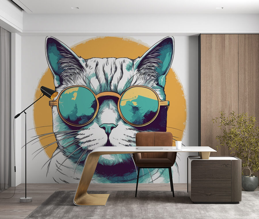 Welcome to a quirky world where a cool cat rocks some snazzy sunglasses. This wall mural is like a dash of fun for any room, bringing a playful vibe that’s hard to resist. Imagine walking into a space and instantly cracking a smile at this feline’s confident expression. It adds a pop of color and personality—like that friend who always knows how to lighten the mood. Whether in a kids’ room or a cozy reading nook, it’s perfect for those who appreciate a little whimsy. This cat’s got style—who wouldn’t want to hang out with such a fashionable buddy?