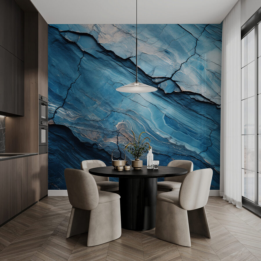 Transform any space with this stunning wall mural featuring mesmerizing blue abstract patterns set against a cracked surface. It’s like a relaxing ocean breeze combined with the raw beauty of nature. Picture this: your living room, bathed in calming shades of blue, making you feel like you’re always on vacation. Friends might even ask if you’ve secretly bought a seaside cottage! The depth of texture here invites an emotional connection—every glance offers a little escape. Perfect for those who crave unique decor that sparks conversation or simply makes the day a bit brighter.