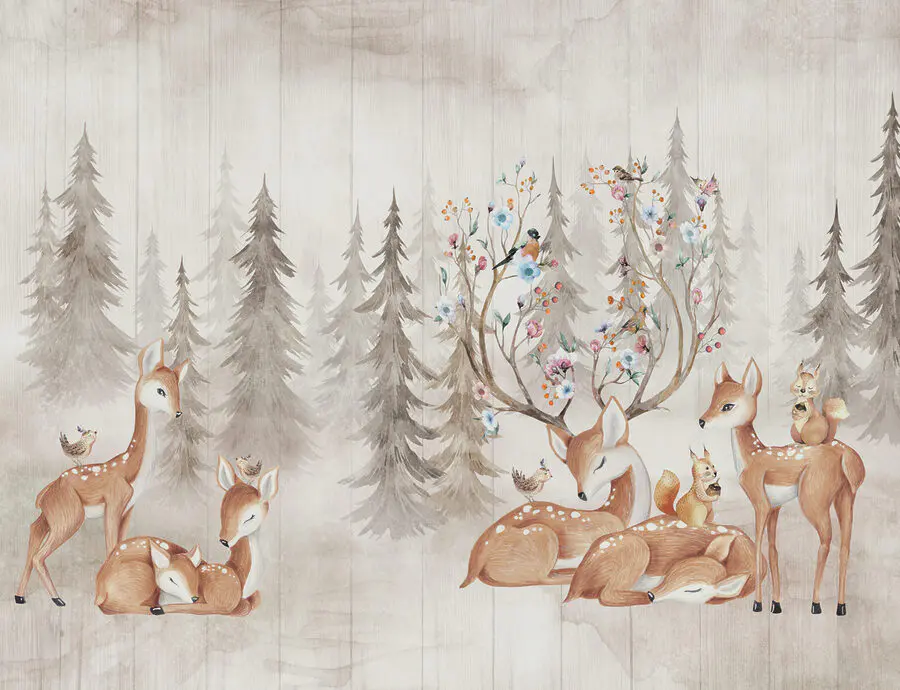 Transform your space with this enchanting wall mural featuring a deer and cheerful birds nestled among whimsical trees. It brings to mind peaceful forest strolls, where nature’s charm wraps around you like a cozy blanket. Imagine waking up to this delightful scene every morning—a little touch of magic right in your home! The soft colors and playful wildlife add a warm, inviting vibe. Perfect for a nursery, playroom, or any cozy nook, it sparks joy and wonder. Plus, who wouldn’t smile at a deer with little birds perched on its back? Nature lovers and dreamers, this one’s for you!
