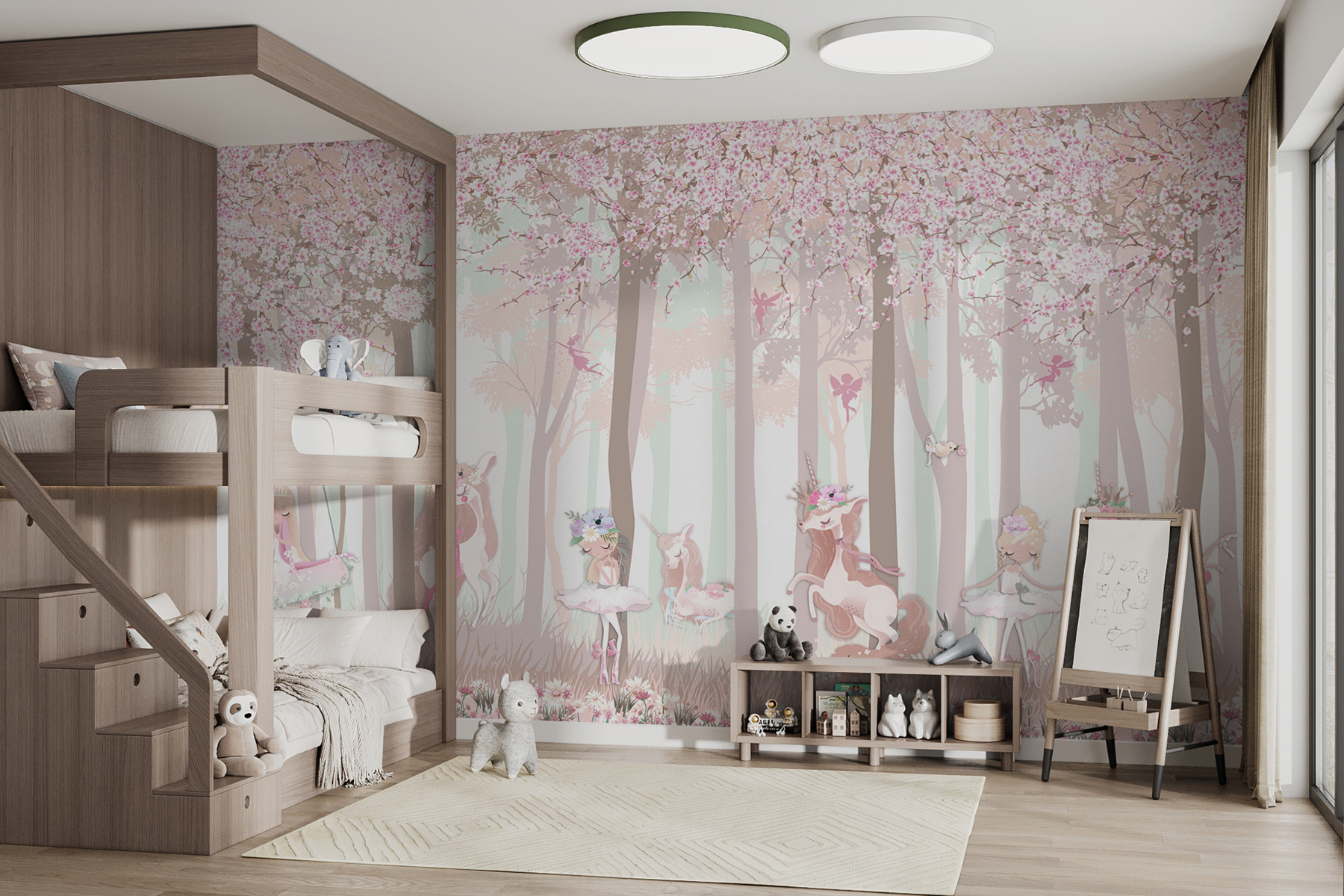 Transform any space into a whimsical wonderland with this delightful wall mural! Picture a serene forest where ballerinas sway gracefully, surrounded by charming unicorns and blooming flowers. It’s like stepping into a fairy tale—without the need for a magic wand. The soft pastels invite calm moments, perfect for a child’s room or even a cozy reading nook. Imagine curling up with a good book as the enchanting scene sparks the imagination. Every glance could bring a smile, reminding everyone that magic lives in everyday moments. Feel free to let your imagination dance among the trees!