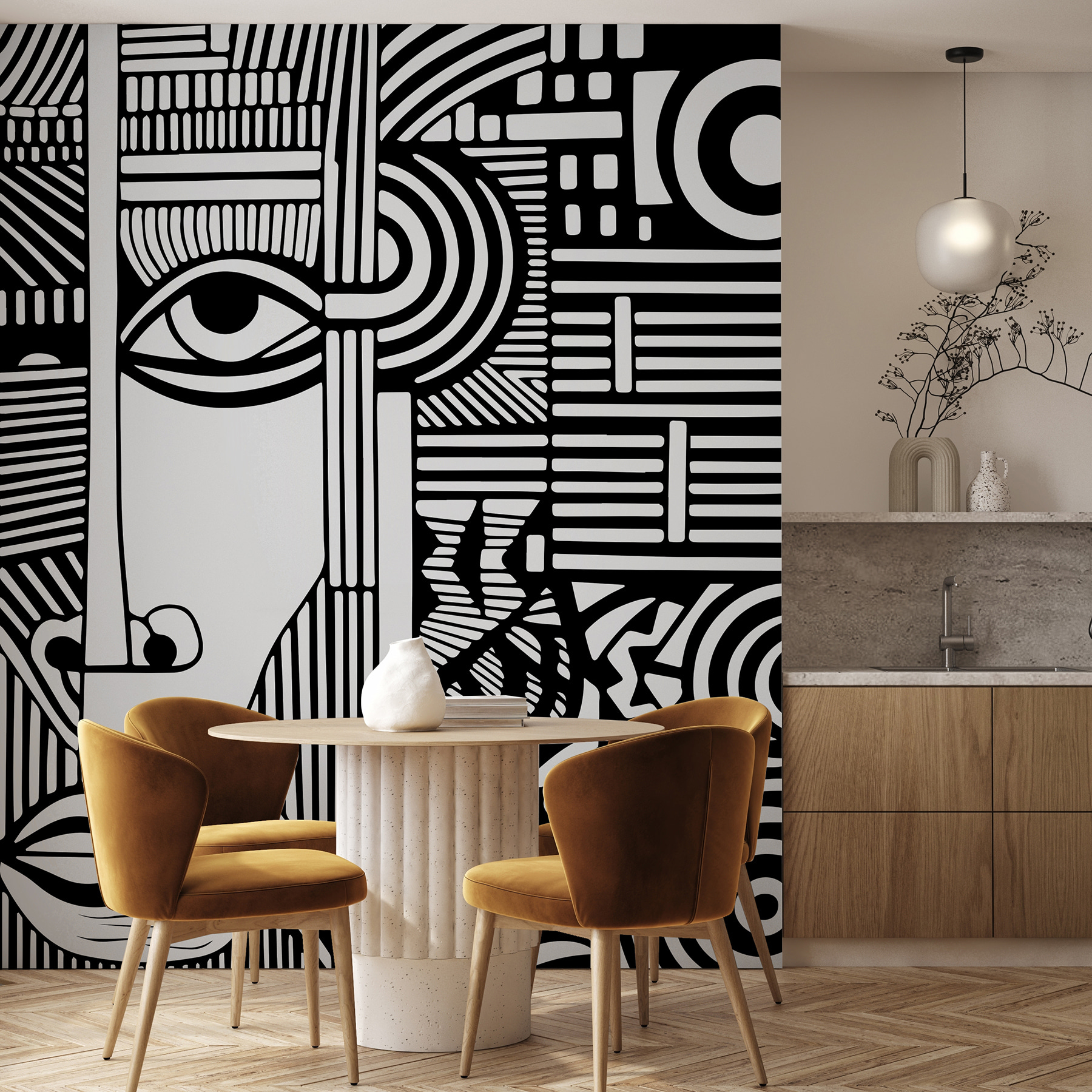 Transform your space with this eye-catching black and white wall mural, featuring a unique drawing of a face. It’s like having a conversation starter on your wall, adding a dash of personality to any room. Imagine stepping into your living space and being greeted by bold lines and intriguing patterns—it’s art that truly speaks! Perfect for those who love a bit of flair without overwhelming colors. Whether it’s in the living room or a cozy reading nook, this mural invites deeper thought and a touch of mystery. Plus, who doesn’t love a little bit of art that makes you wonder about the story behind it?