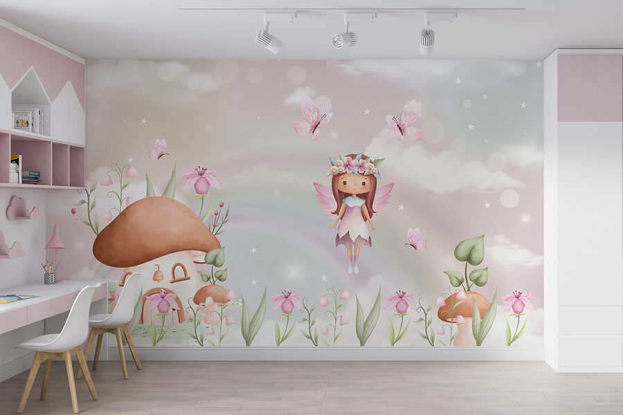 Transform a child’s room into an enchanting wonderland with this delightful fairy wall mural. Bursting with soft pastel colors, it features an adorable fairy, fluttering amidst blooming flowers and dancing butterflies. Imagine little ones gazing at this magical scene, dreaming of adventures, or even daring to believe in fairies. It’s perfect for sparking creativity or adding a whimsical touch that brings smiles. Plus, the gentle pastel backdrop creates a calming vibe — just the thing for cozy bedtime stories or playtime explorations. Who wouldn’t want to hang out in such a dreamy space?