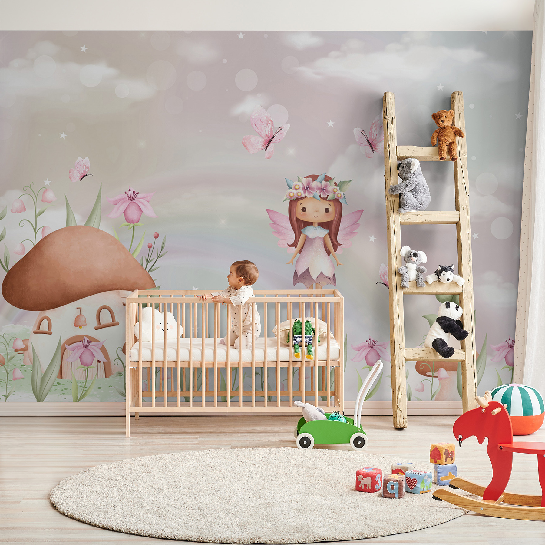 Transform a child’s room into an enchanting wonderland with this delightful fairy wall mural. Bursting with soft pastel colors, it features an adorable fairy, fluttering amidst blooming flowers and dancing butterflies. Imagine little ones gazing at this magical scene, dreaming of adventures, or even daring to believe in fairies. It’s perfect for sparking creativity or adding a whimsical touch that brings smiles. Plus, the gentle pastel backdrop creates a calming vibe — just the thing for cozy bedtime stories or playtime explorations. Who wouldn’t want to hang out in such a dreamy space?