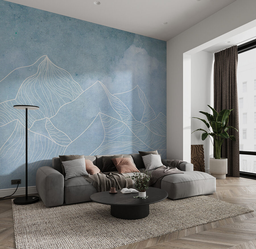 Transform your space into a serene mountain retreat with this stunning wall mural. Delicate lines sketch majestic peaks against a soothing blue backdrop, creating a sense of calm that’s perfect for any room. Imagine sipping your morning coffee while gazing at this ethereal landscape, feeling like you’re on a peaceful mountaintop, minus the hiking gear. It’s like bringing nature inside without the dirt and bugs! This mural is not just decor—it’s an invitation to escape, breathe deeply, and let your imagination wander. Perfect for cozy living rooms or a restful bedroom, it’s sure to spark warm conversations and dreamy daydreams. Embrace the mountain vibes!