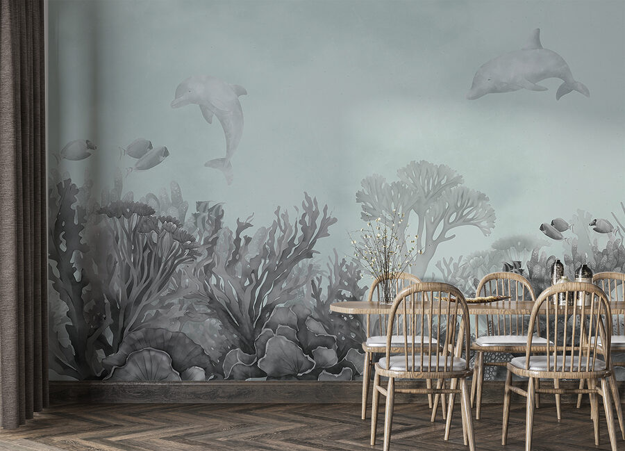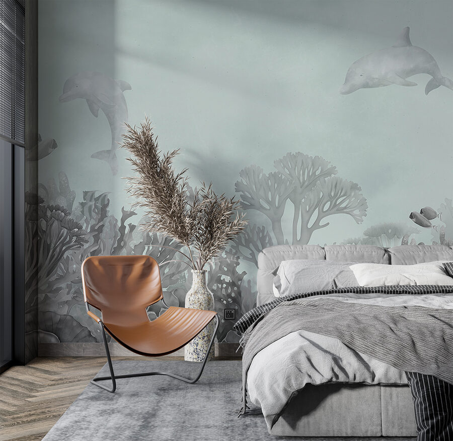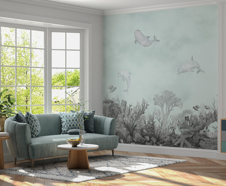 Transform your space into a soothing underwater paradise with this stunning dolphin mural. Imagine walking into a room where graceful dolphins playfully swim across the wall, bringing a touch of the ocean right to your home. It’s not just a mural; it’s like having a pocket of calm amid the daily hustle.