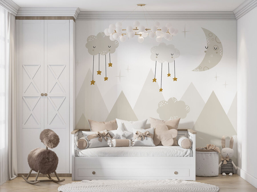 Transform your space into a cozy dreamland with this delightful “Wall Murals Moon and Clouds in the Sky.” Picture soft clouds hanging playfully with tiny stars—aren’t they just charming? The gentle hues create a serene vibe, perfect for a nursery or a chill-out corner. Imagine sipping tea while gazing at this whimsical scene; it’s like a hug for your walls. Plus, who could resist those smiling clouds? They add a sprinkle of magic, making the ordinary feel extraordinary. It’s the kind of mural that turns your room into a peaceful retreat, inviting sweet dreams every night. What’s not to love?