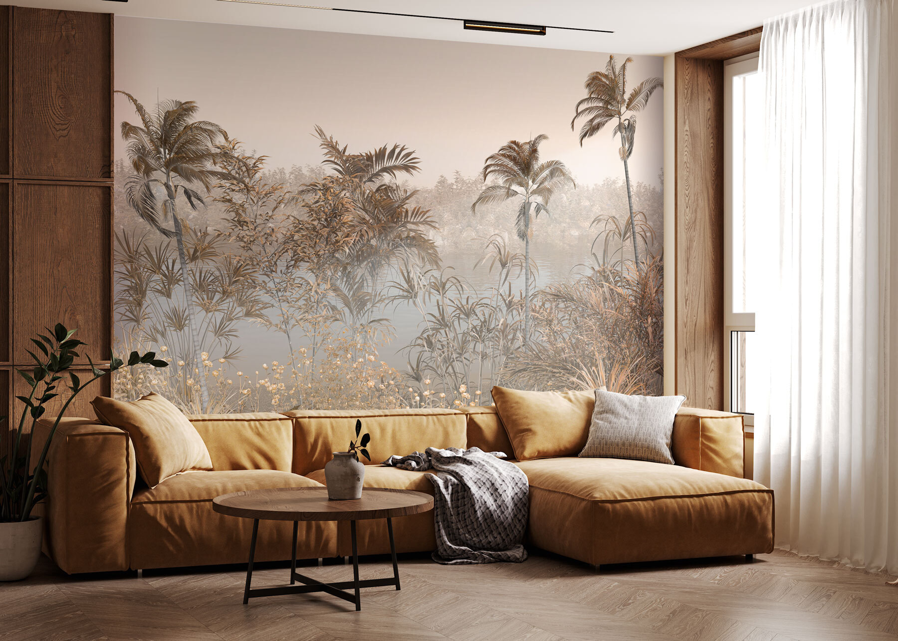 Transform any room into a serene oasis with this stunning wall mural featuring palm trees swaying gently beside a tranquil body of water. It’s like a mini-vacation right in your living space! The soft colors and lush greenery evoke that blissful feeling of lounging beachside, just maybe without the sand in your toes. Picture this: sipping a cool drink while lounging on your couch, gazing at these beautiful trees as they seem to whisper sweet nothings about relaxation. Perfect for a nature lover or anyone craving a bit of calm, this mural adds character and warmth effortlessly. Let your walls do the talking!