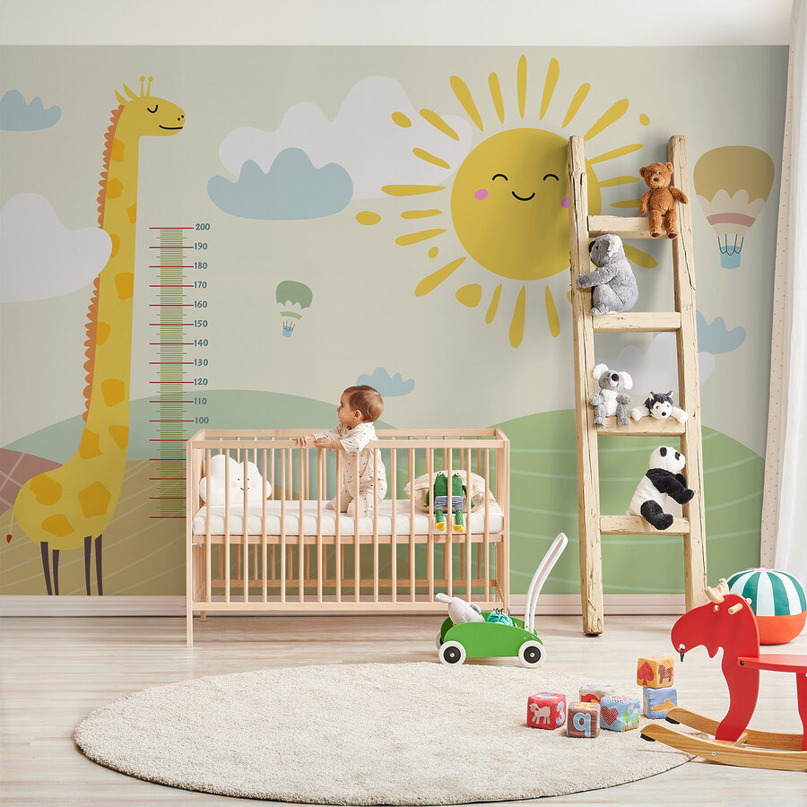 Imagine transforming a plain wall into a whimsical scene where a cheerful giraffe lends a hand—well, a neck—to measure your child’s height! This mural isn’t just a playful addition; it’s like inviting a gentle giant into your home. Picture sunbeams and floating hot air balloons cheering on every inch gained. Kids will giggle seeing their progress marked alongside a friendly giraffe, making those height milestones feel like epic adventures. It’s perfect for nurseries or playrooms, sparking imagination while keeping things oh-so-fun. Every glance at this mural brings a smile, turning ordinary days into extraordinary ones. Perfect for little dreamers!
