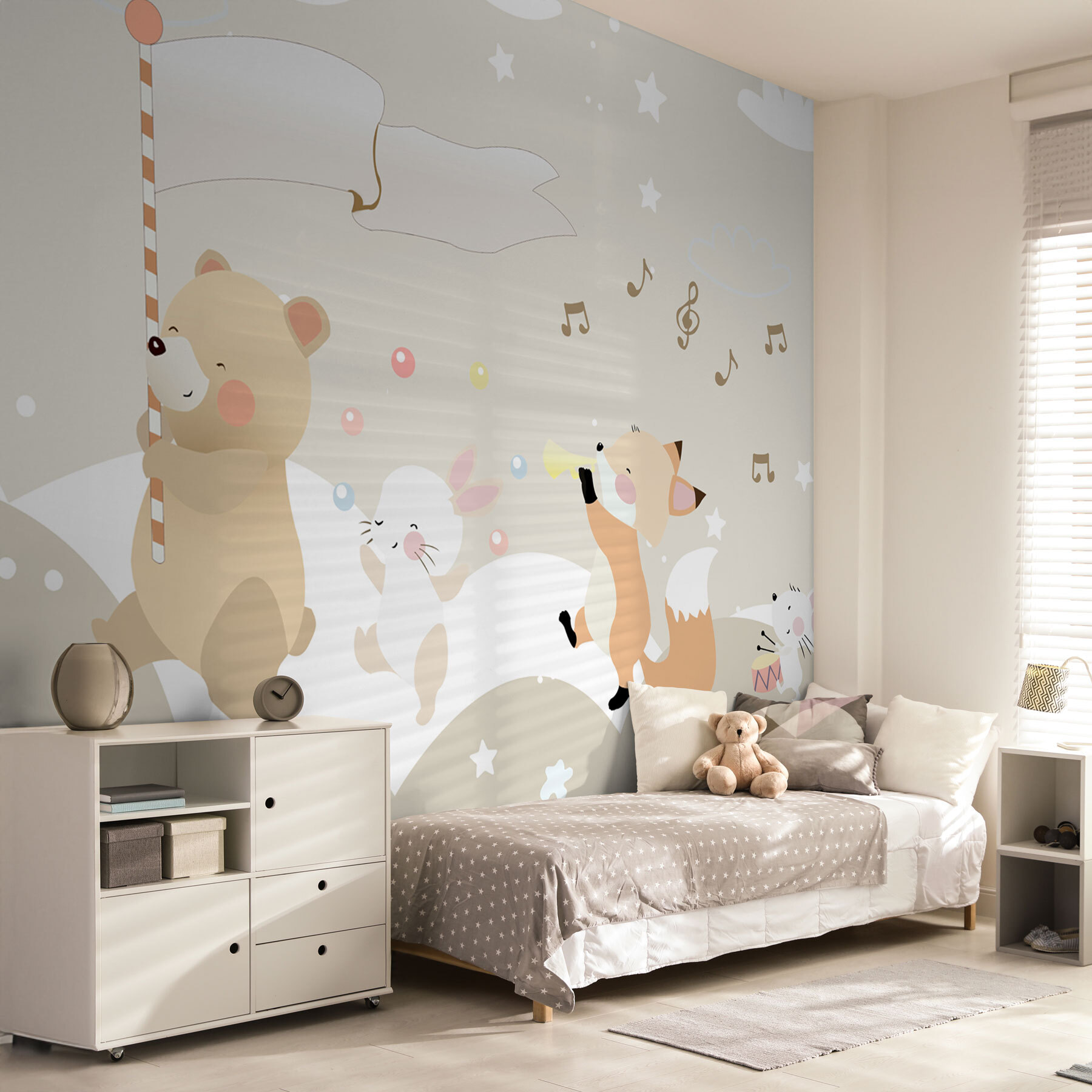 Transform any little one’s space into a whimsical wonderland with this charming wall mural of a teddy bear holding a candy cane. Instantly, the room fills with cheer, as if a holiday party just got started! Picture a tiny tot waking up to bright, friendly animals dancing around, bringing instant smiles—who wouldn’t love that? This playful design not only sparks imagination but also provides a cozy backdrop for bedtime stories and giggles. It’s a delightful splash of fun that whispers, “Adventure awaits!” Perfect for nurseries or playrooms, it’s like inviting a bit of magic into everyday life. Let the decor do the talking and watch the joy unfold!