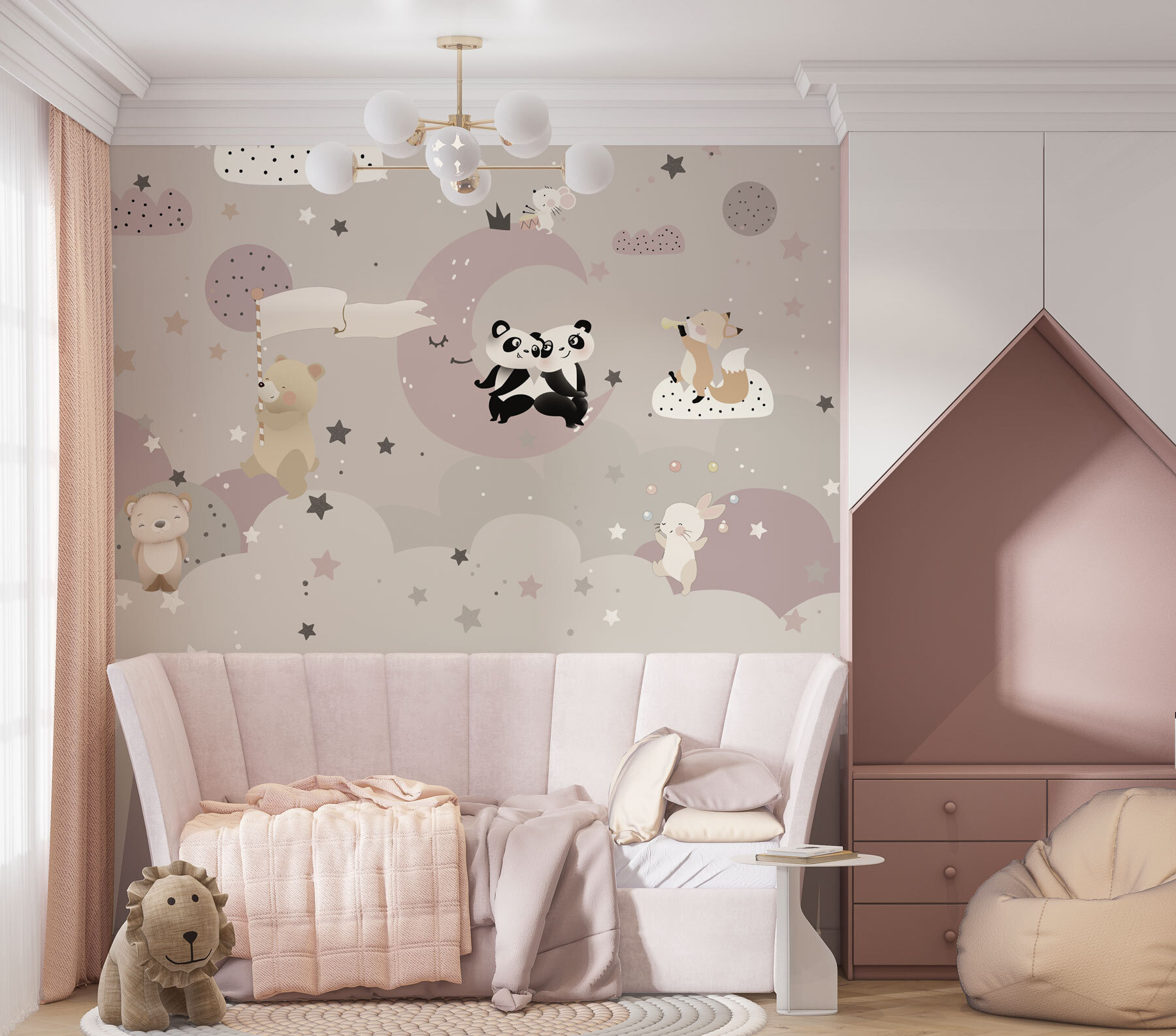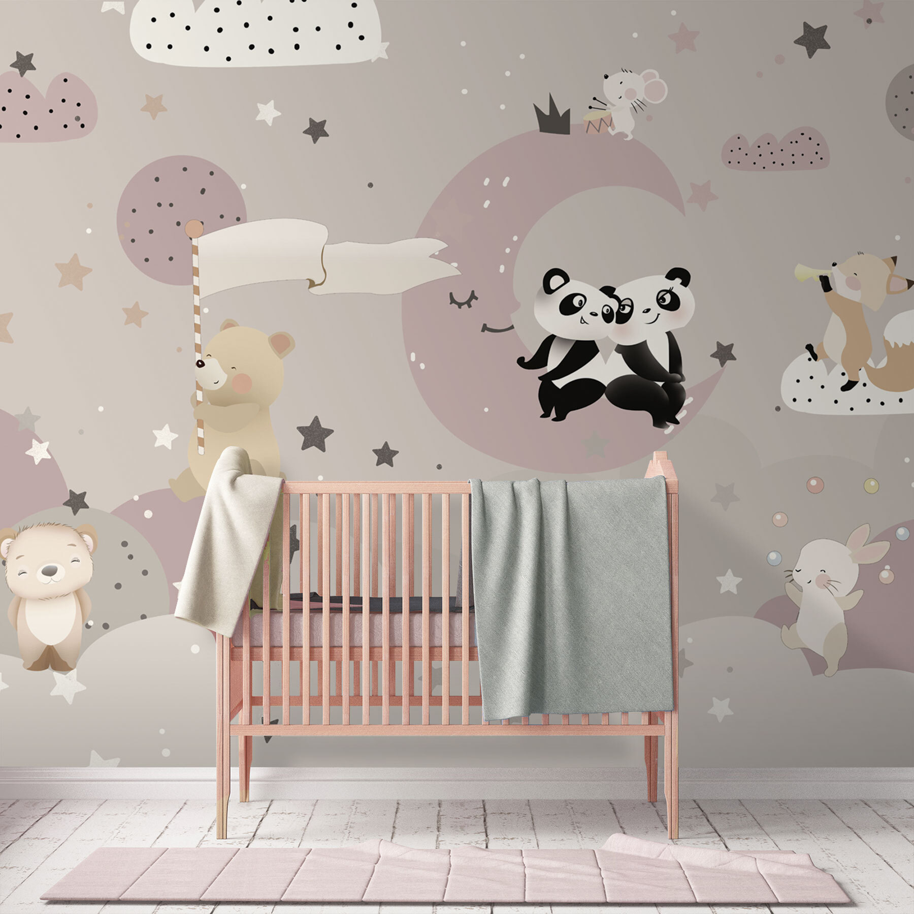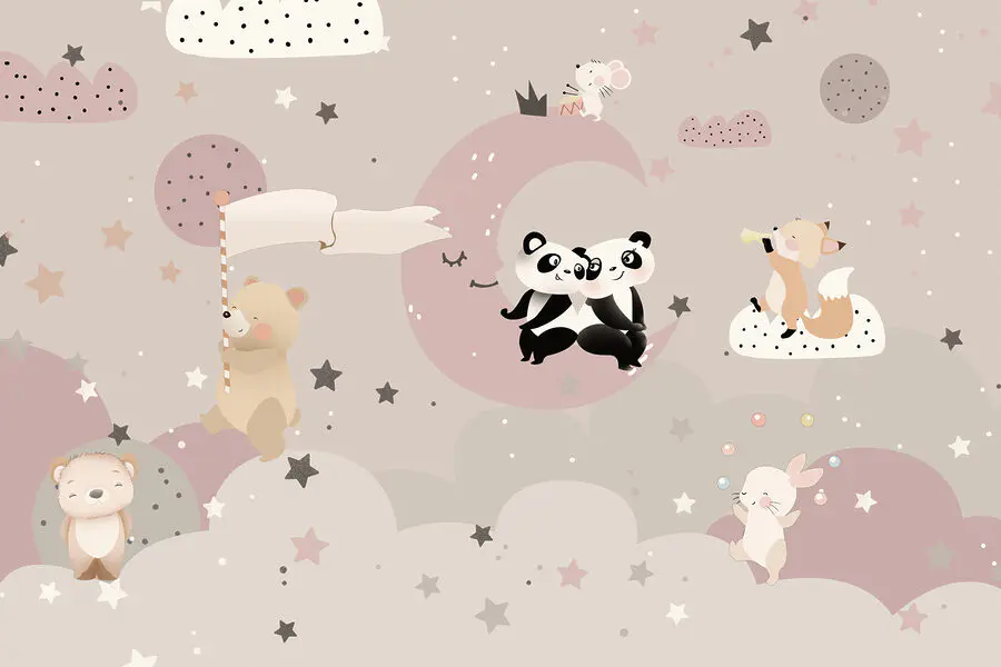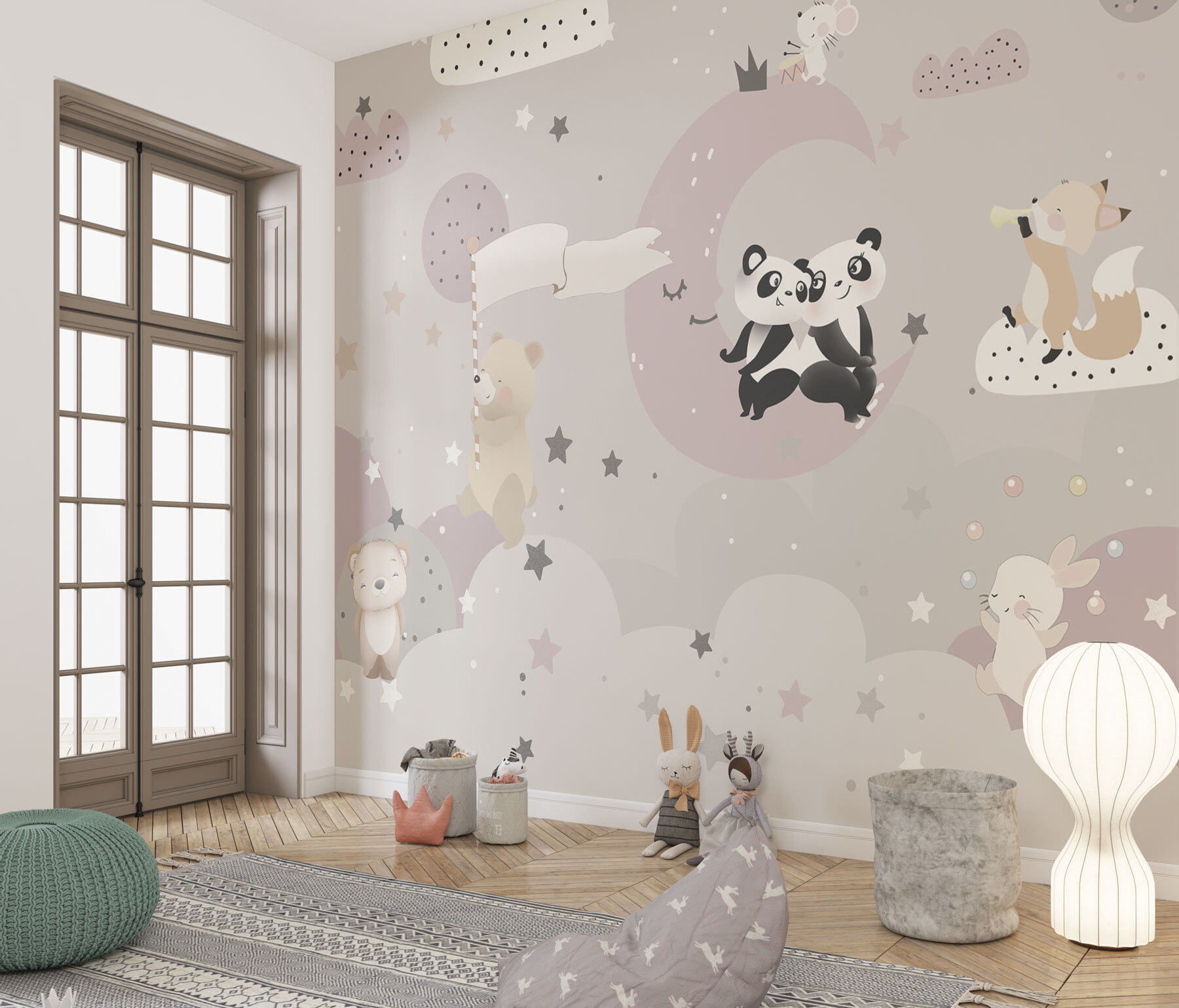 Bring a splash of whimsy into your space with this “Wall Murals Cartoon of a Bear.” Imagine walking into a room and immediately feeling like you’ve stepped into a cozy woodland tale—where playful bears wave flags, pandas hold hands, and even a fox is making music among the clouds. This mural captures a dreamy, soft color palette that wraps around you like a gentle hug. Ideal for nurseries, playrooms, or anywhere that could use a sprinkle of joy. It’s like a warm cup of cocoa for your walls! Who wouldn’t smile every time they catch a glimpse? Perfect for sparking imagination in little ones or simply bringing out the kid in you. This isn’t just decor; it’s a gateway to daydreams.