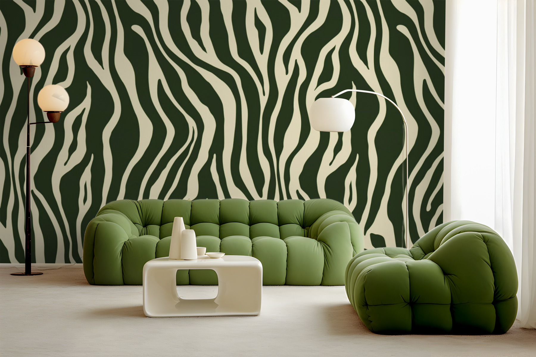 Imagine walking into a room and being greeted by a stunning green and white zebra print that instantly brightens up the whole space. This wall mural isn’t just a decoration; it’s like a vibrant splash of nature that makes every day feel a little more adventurous. With its flowing lines and unique pattern, it brings a sense of movement—kinda like watching grass dance in the wind. It’s perfect for creating a serene yet stylish ambiance, turning a plain wall into a conversation starter. Picture friends dropping by, eyes lighting up as they admire the bold choice. Who knew a little wall art could spark such joy? Plus, it’s a fun way to channel your inner interior designer—no degree required! Just a love for the quirky and beautiful.