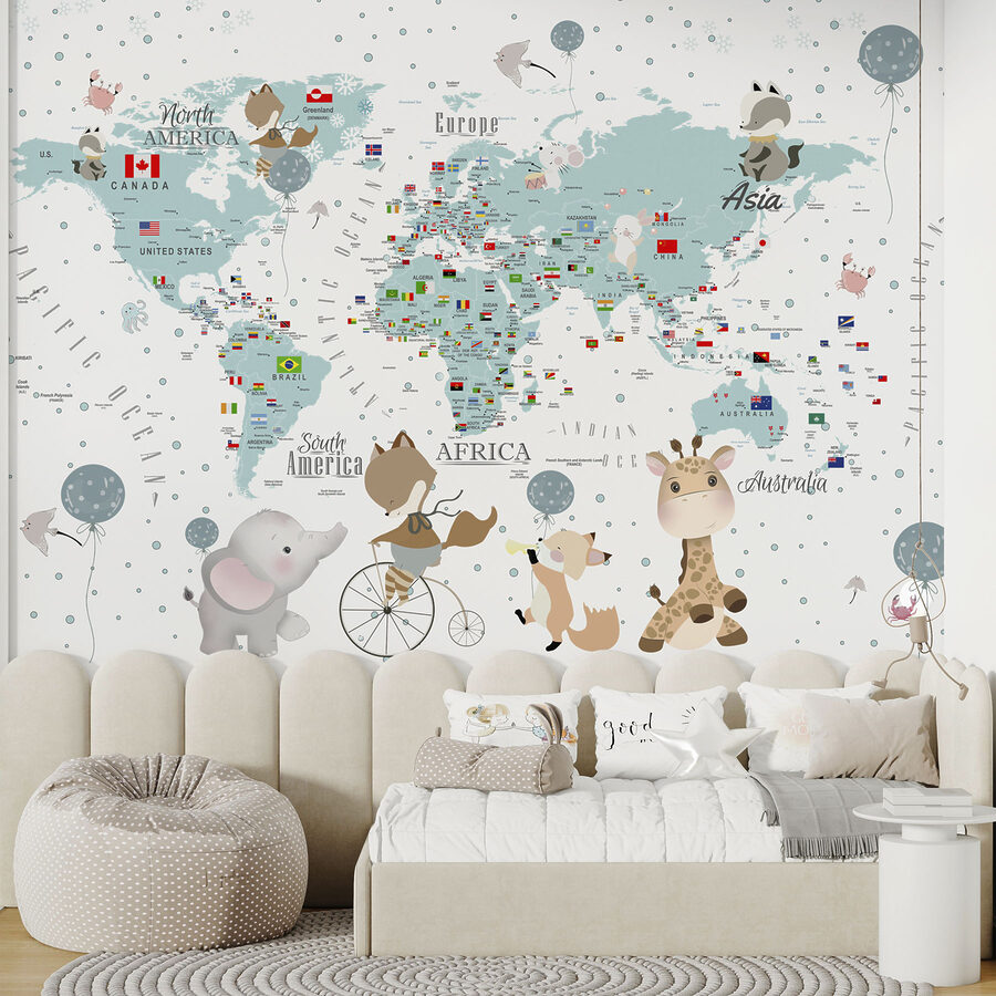 Transform any kid’s room into a mini-world of adventure with this delightful wall mural. Featuring an adorable map, it’s sprinkled with little animals that seem ready to leap into action. Just imagine a curious elephant riding a bike or a playful giraffe peeking around. It’s like a party for their imagination! This mural makes learning about the world fun—who knew continents could look so cute? Perfect for sparking those “What’s over there?” moments. It’s a charming addition that grows with them, turning walls into stories and sparking endless explorations. Kids and parents alike will love getting lost in this vibrant world!