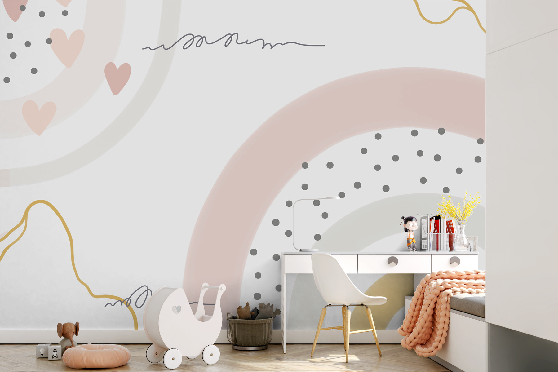 Transform any room with this vibrant wall mural featuring abstract pastel shapes and playful dots. It’s like a gentle hug for your walls, bringing warmth and character into your space. Imagine stepping into your living room and being greeted by soft hues that spark joy—perfect for those cozy afternoons with a good book or a spontaneous dance party. This mural complements nature-inspired decor beautifully, making every corner feel alive. With its whimsical charm, it’s sure to inspire smiles and maybe even a little bit of daydreaming. Who wouldn’t want a little art in their life?